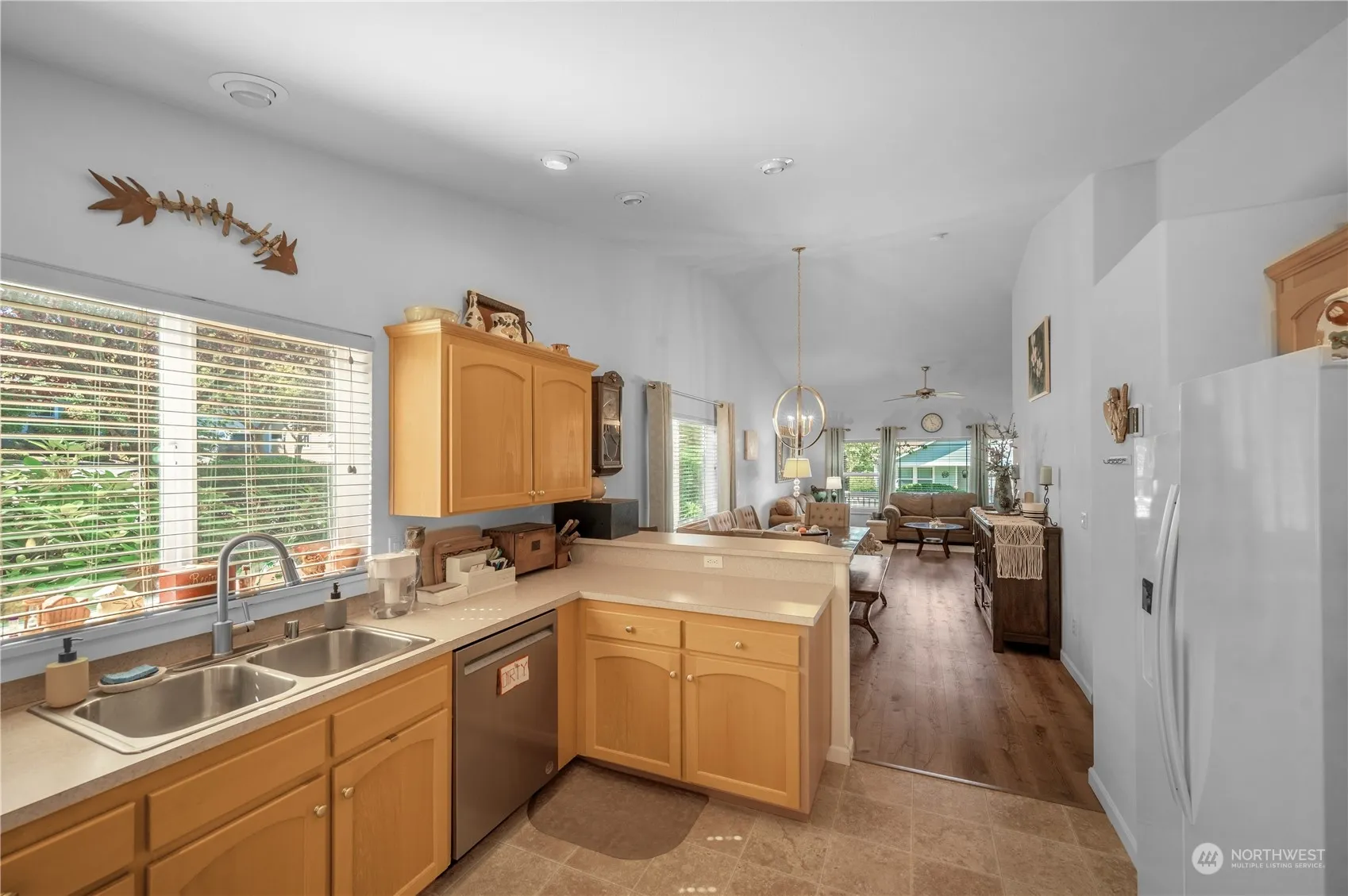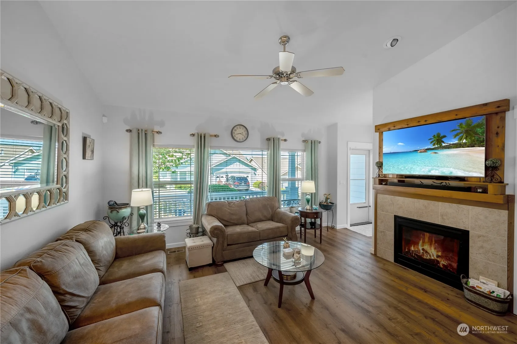 Craftsman cottage single story home in wonderful 55+ Cherry Hill Community. Open kitchen, living, and dining room. Corner lot is flooded with with natural light. Home features: Vaulted ceilings, luxury engineered wood flooring, covered front porch, gas fireplace. Spacious kitchen with warm wood cabinetry, breakfast bar, and plenty of cabinet space. Large primary bedroom with on-suite bathroom, quartz counter top, and walk in closet. Cute back patio. HOA maintains the following: front and backyard, home exterior paint, landscaping, and clubhouse. 20% of owners between 35-55 years old are allowed. Close to schools and shopping. This is a must-see home.
