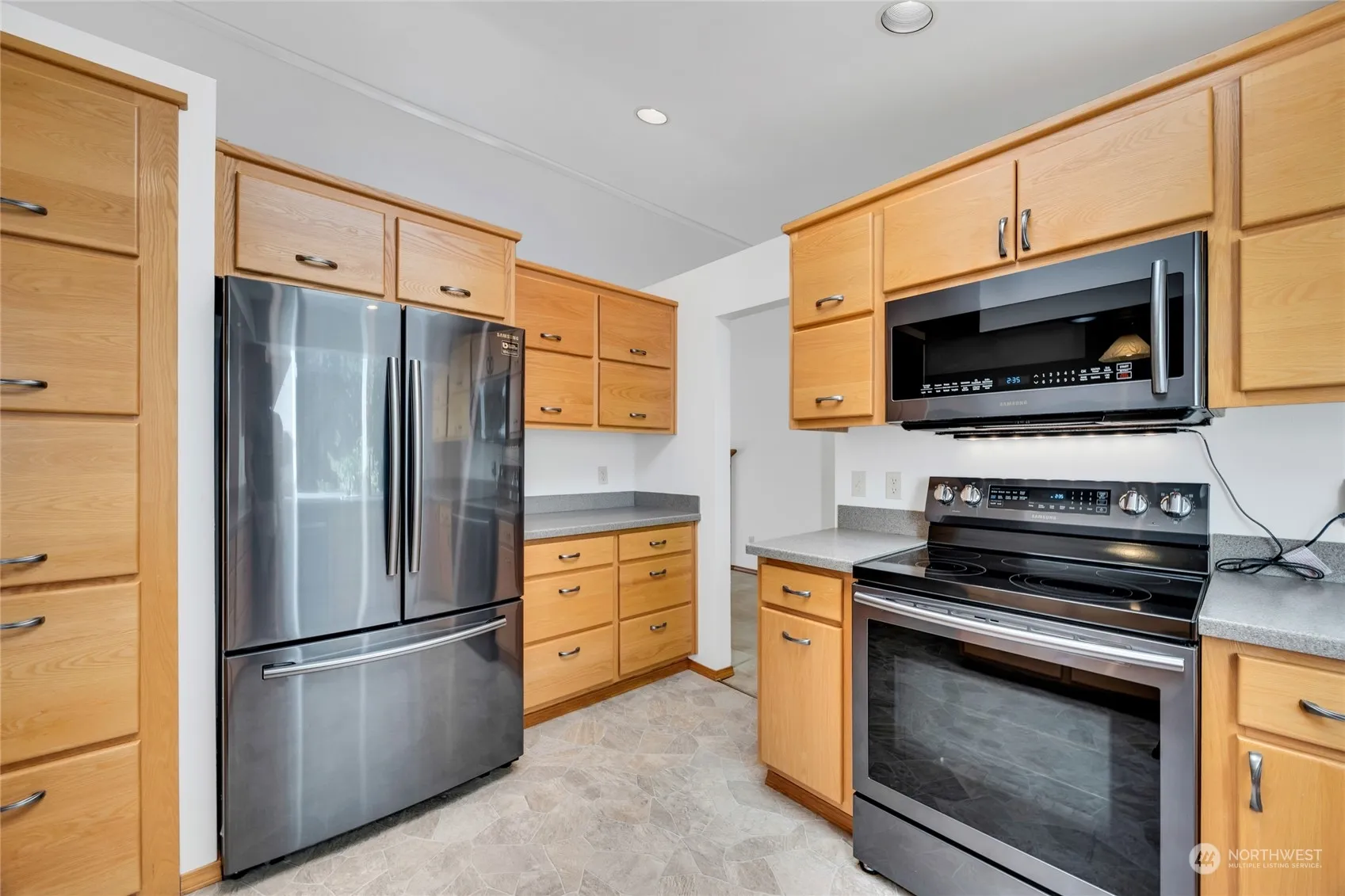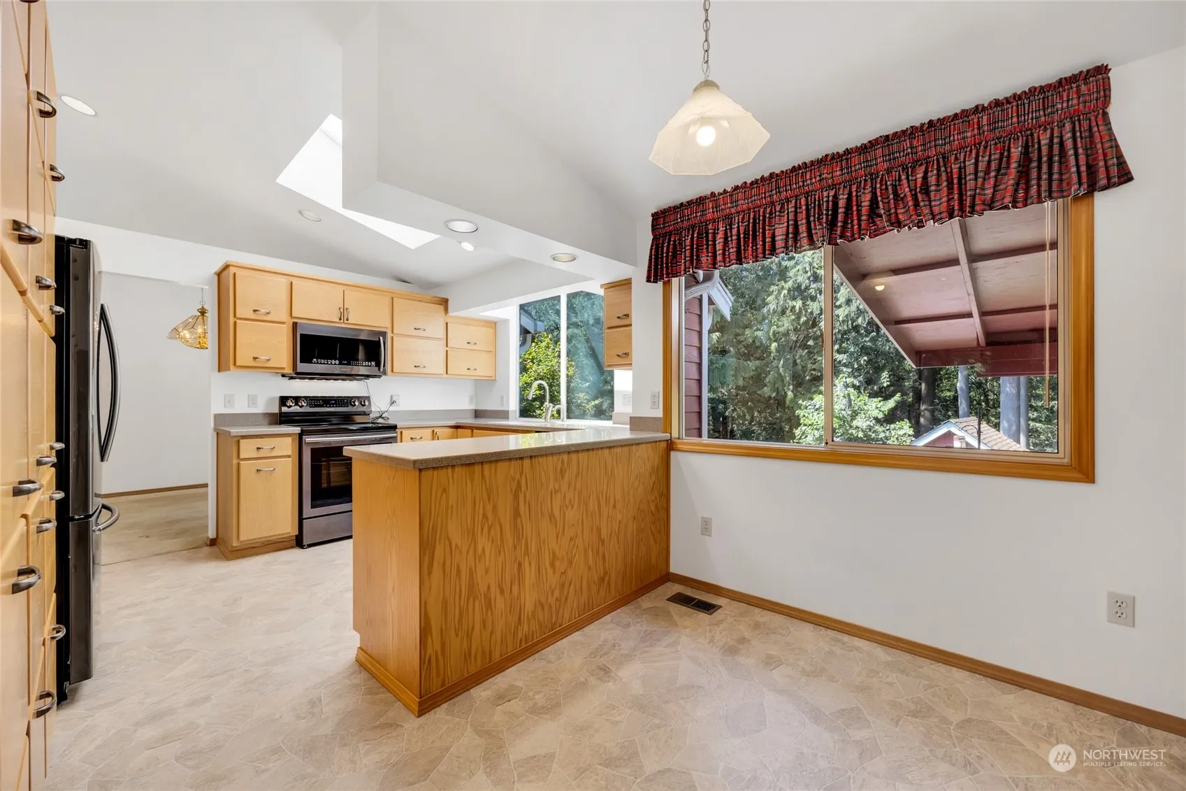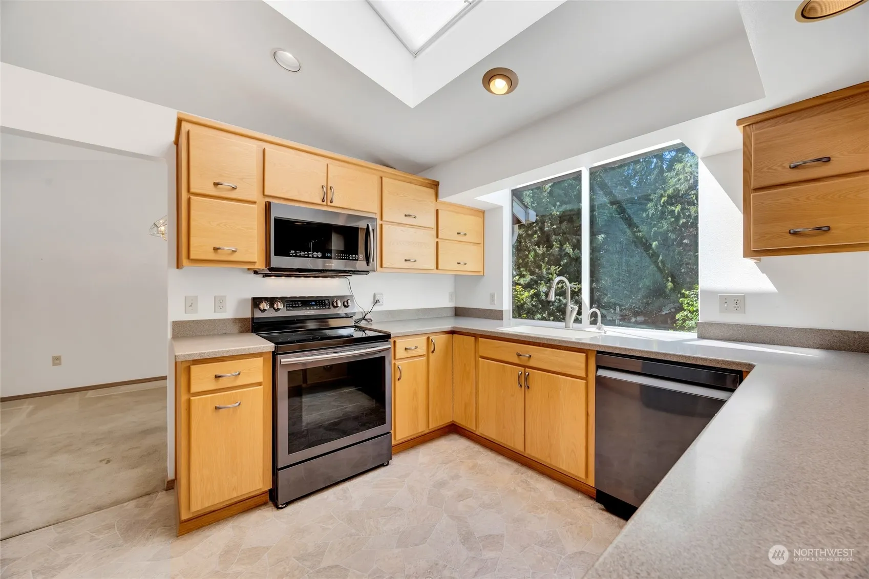 Fantastic opportunity to own in the highly desirable GLENEAGLE community- This light & bright 4 bed home features 2436 sf of living space, some interior paint & new flooring would make this place shine. Main level highlights a spacious living & family room. Enjoy the UPDATED KITCHEN w/ ample counter & cabinet space + all SS APPLIANCES stay. Upstairs spacious primary bedroom & ensuite bath along w/ 2 additional bedrooms & a full hallway bath. Opportunity awaits w/ the MIL POTENTIAL DOWNSTAIRS featuring its own kitchen, living room, bedroom, full bath & separate entrance. CENTRAL A/C. Beautiful landscaping, manicured lawn & shed for extra storage. Community clubhouse, golf course, restaurant & walking trails. Close to schools, shopping & I-5!