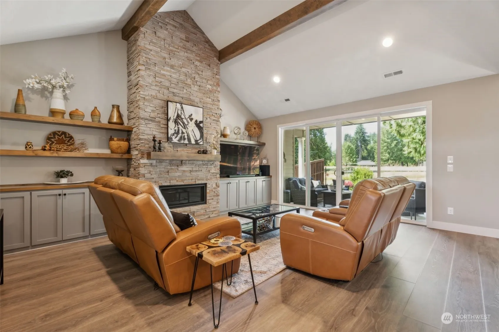 PRICE IMPROVEMENT:This 4 bdrm, lg 1-level home w/ high-end custom finishes throughout, is just waiting for you! 2154 sq. ft. 4 bdrm 2 full bath & open concept. Everything is oversized: great room, covered patio, garage (2 1/2 car-extra deep), pantry, laundry, primary suite w/ stand-alone tub/walk-in shower. Vaulted beamed ceiling in living room, 8ft tall door frames & 11 ft. high ceilings. . .this home was designed w/comfort in mind. Addtl features include: Bosch stainless appliances, custom cabinets w/soft-close, upgraded plumbing fixtures, craftsman trim-wrapped windows, gas fireplace, gas cooktop & built-in oven & microwave, HUGE granite island with a waterfall edge, and TONS of storage.