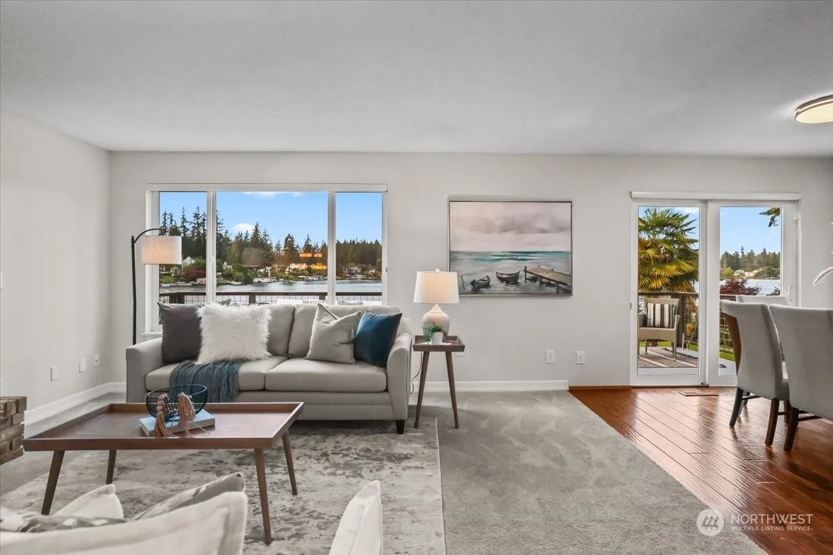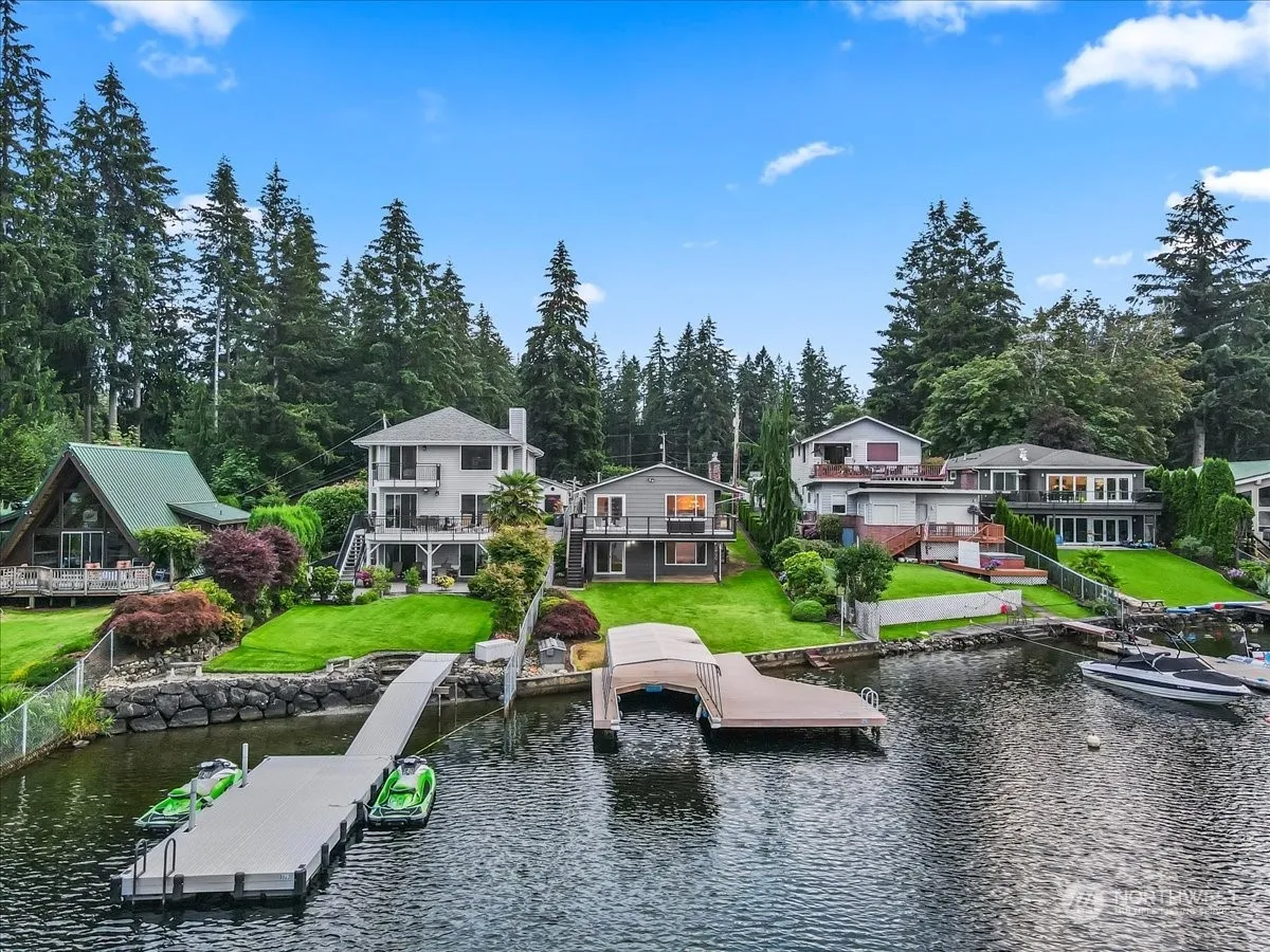 Nestled behind a private gated entry, this exquisite home offers 53′ of waterfront property with a breathtaking lake view. Enjoy the luxury of a private dock and boat slip, with a community boat launch conveniently located just 1/2 mile away. Inside, you’ll find elegant hardwood floors on the upper level and a gourmet kitchen with gas cooking & granite counters. The Primary bedroom features a 5-piece ensuite with a jetted tub. The lower level offers a cozy gas fireplace, a spacious family room, 3rd bedroom, & an additional flex room. Enjoy RV parking with 220 hookup, and an additional detached shop. With four covered parking spaces, a garden, & sprinkler system, this property offers the perfect blend of elegance, comfort, and functionality.