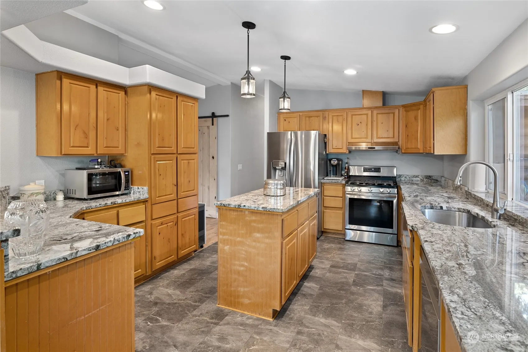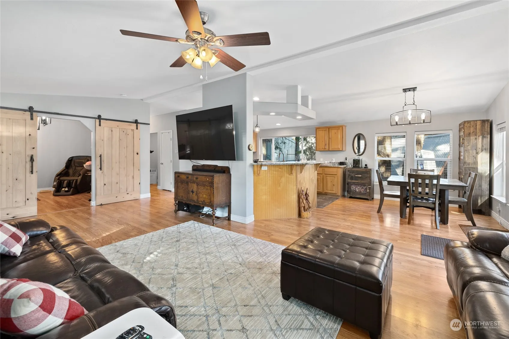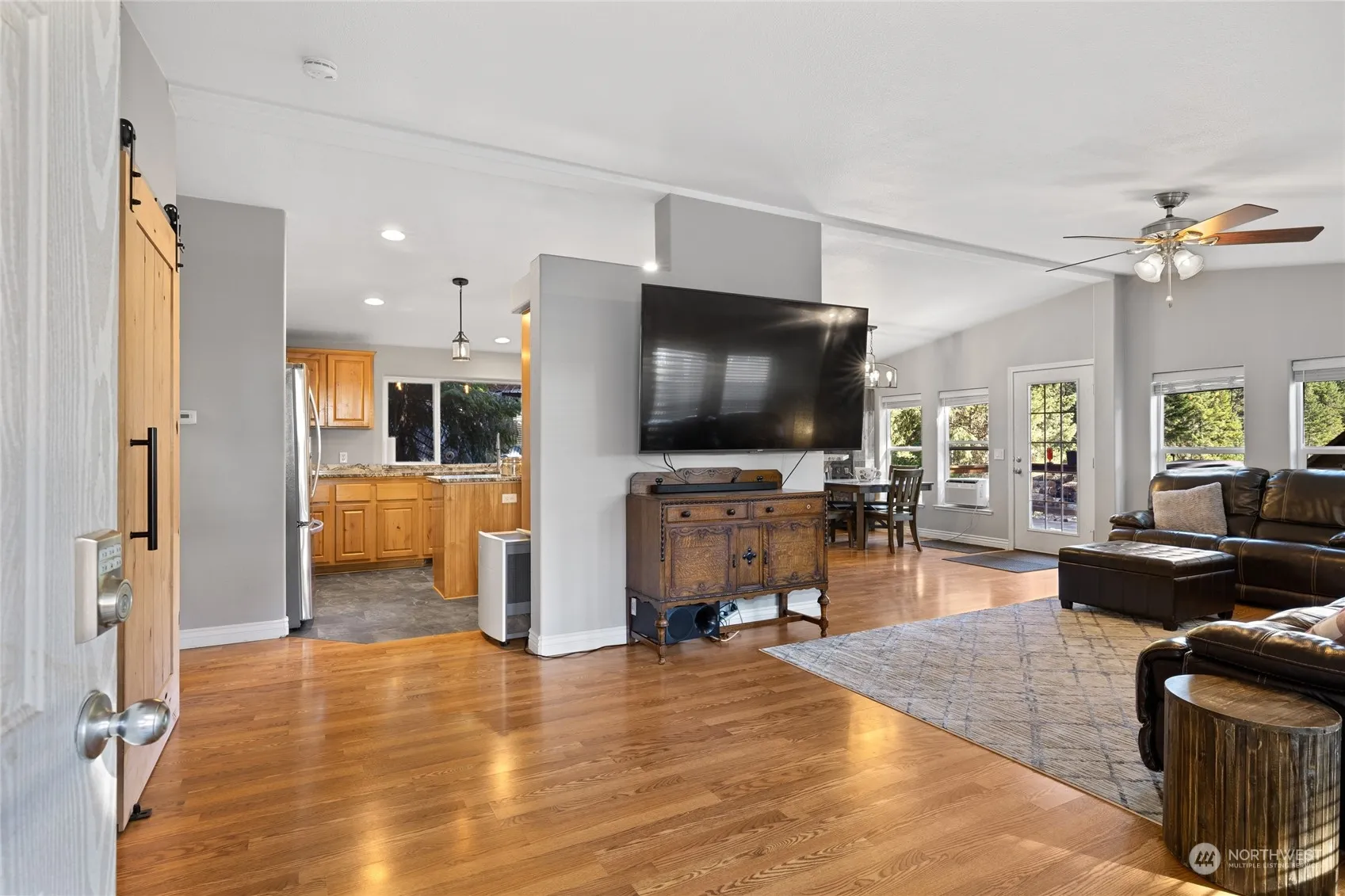 Discover tranquility in picturesque Easton! Here is the cozy 3 bed, 2 bath home you have been waiting for! Tons of natural light & many windows to capture the mountain views. Vaulted great room, wood fireplace, new Pergo floors, & fresh paint are perfect blend of rustic charm & modern comfort. The spacious eat in kitchen boasts new appliances, luxury vinyl flooring & granite counters leading to the back deck. Imagine the warm sunshine filtering through the trees as you enjoy a morning cup of joe or evening cocktail admiring Goat Peak mountain. Outbuildings provide many opportunities, perfect for a workshop or studio. Insulated 24×30 shop w/ loft for all your toys! Surrounded by forest this level property is an outdoor recreation paradise.