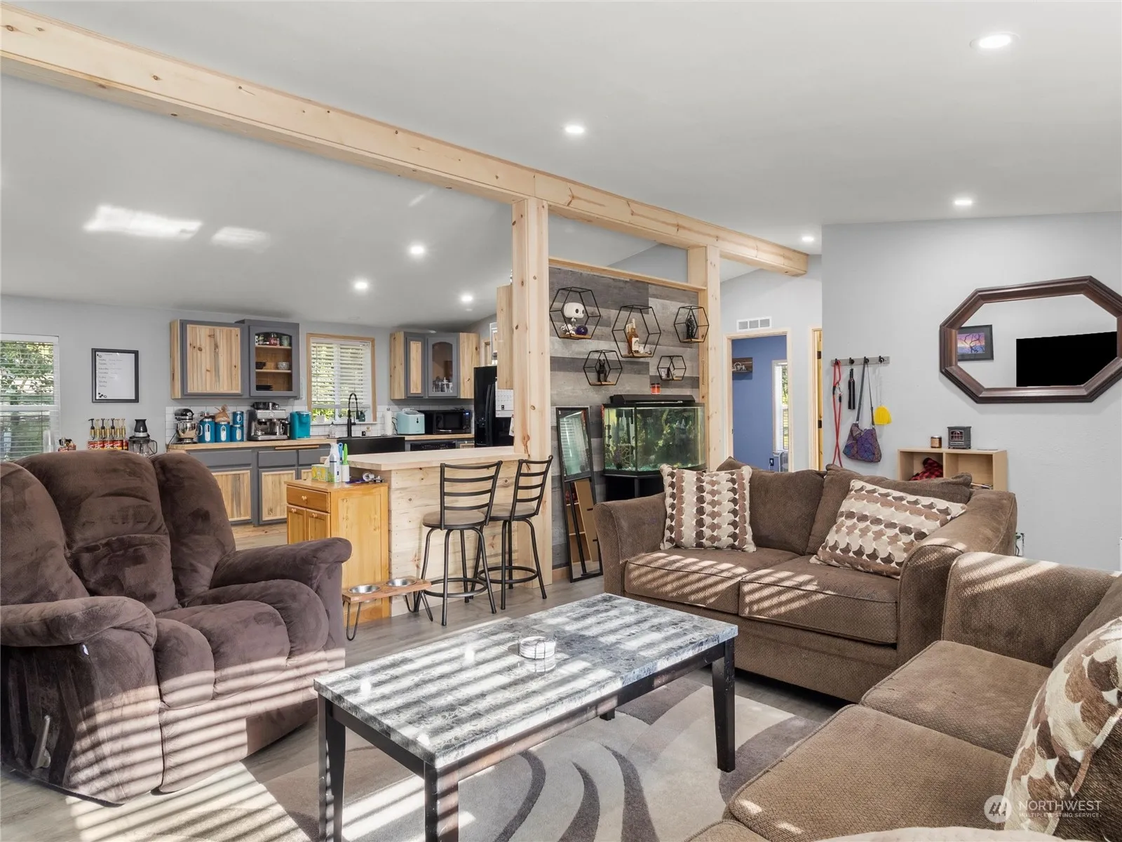 ***Motivated Seller!!!*** Wonderfully updated 3 bedroom home in the quiet neighborhood of Whispering Woods. This single level home has been remodeled with butcher block countertops, farmhouse sink, laminate flooring and ceramic tile throughout, and gorgeous wood look support beams. The open floor plan and vaulted ceilings make for an airy and spacious feeling. Both bathrooms are done in beautiful tile and modern vanities. Outside you have a fenced area perfect for your pets and a storage shed. Plenty of parking space for you and your guests. Come check out this great home today.