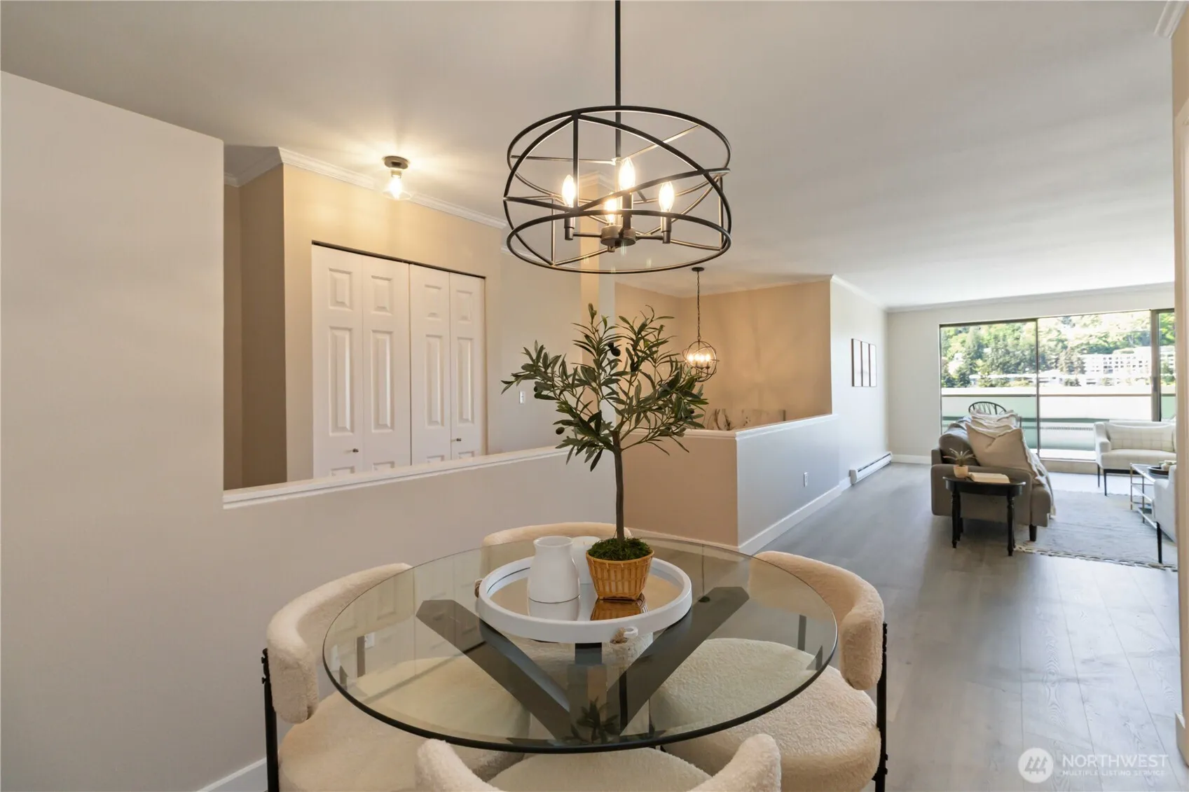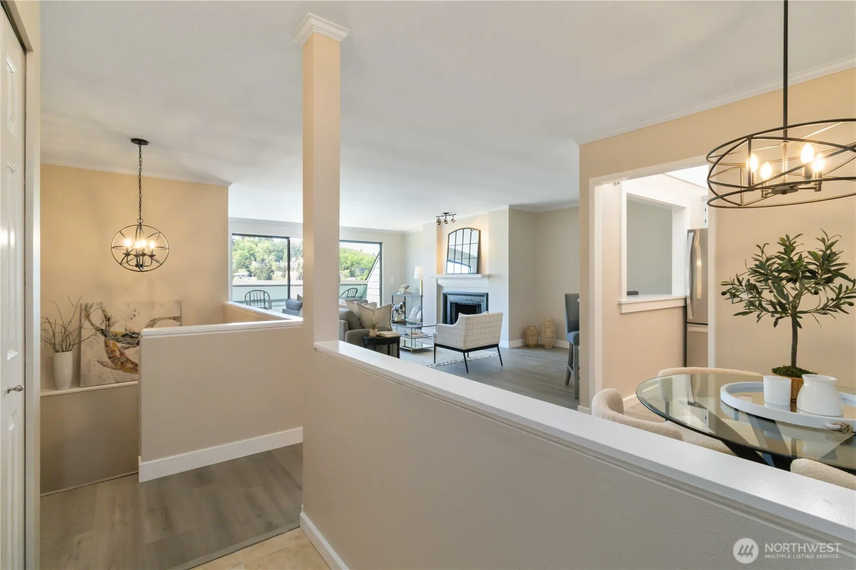 Turnkey Top-Floor Condo in the Heart of Mercer Island is move-in ready. This remodeled home offers a prime location just steps from the Farmers Market, parks, shops, and dining. The open-concept main level boasts new luxury flooring, fireplace, and a modernized kitchen with premium appliances and new quartz countertops. The west-facing deck delivers stunning sunset and city views.The lower level features a tranquil primary suite with an ensuite bath and a private balcony, along with a second bedroom, another updated full bath, and a versatile flex space perfect for a home office, gym, or creative studio. In-unit laundry completes the layout. Located in a secure, well-maintained building with an elevator and two dedicated parking spaces.