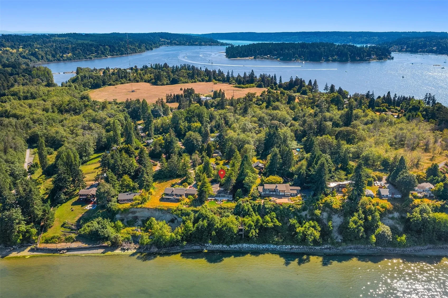 Nestled at the end of a quiet road, this elegant single-story home has breathtaking Puget Sound views. Embraced by a natural beauty, the primary suite has French doors opening to an expansive deck. 2 add’l bedrooms, bath, & versatile living spaces – including a sunroom – offer flexibility.The property’s allure extends beyond its walls, with over 3 acres of lush gardens, a pond, and trails. With 65 ft of high-bank waterfront and 2 ADUs, this retreat provides both privacy and potential.The attached garage and workshop cater to practical needs and creative pursuits. This idyllic sanctuary blends natural beauty with refined living, creating an irresistible escape you’ll never want to leave!