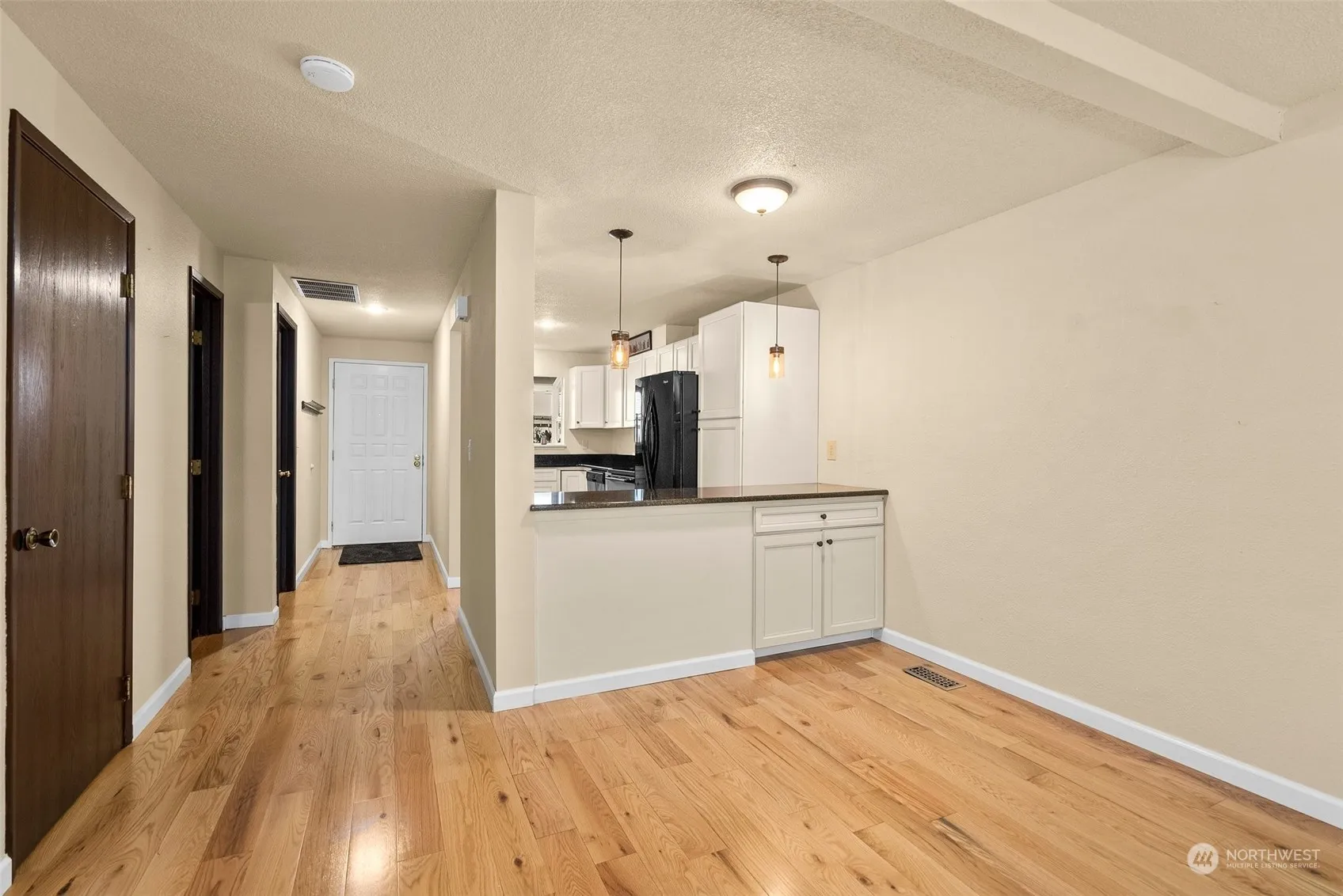 Welcome Home to Bridgeport Park Estates, a Wonderful Condominium Community in University Place. This fantastic condo features an open and spacious floor plan, zero access entry stairs, light and bright living room with fireplace that is open to the nicely updated kitchen with pass through and eating area, Bellawood hardwood flooring on lower level, lovely primary bedroom, 2 total bedrooms, one 3/4 bath and one 1/2 bath. You will love the lower and upper lever balcony/patio areas off of each bedroom and the living spaces. 1 car attached garage, conveniently located to all amenities, UP Schools and more!