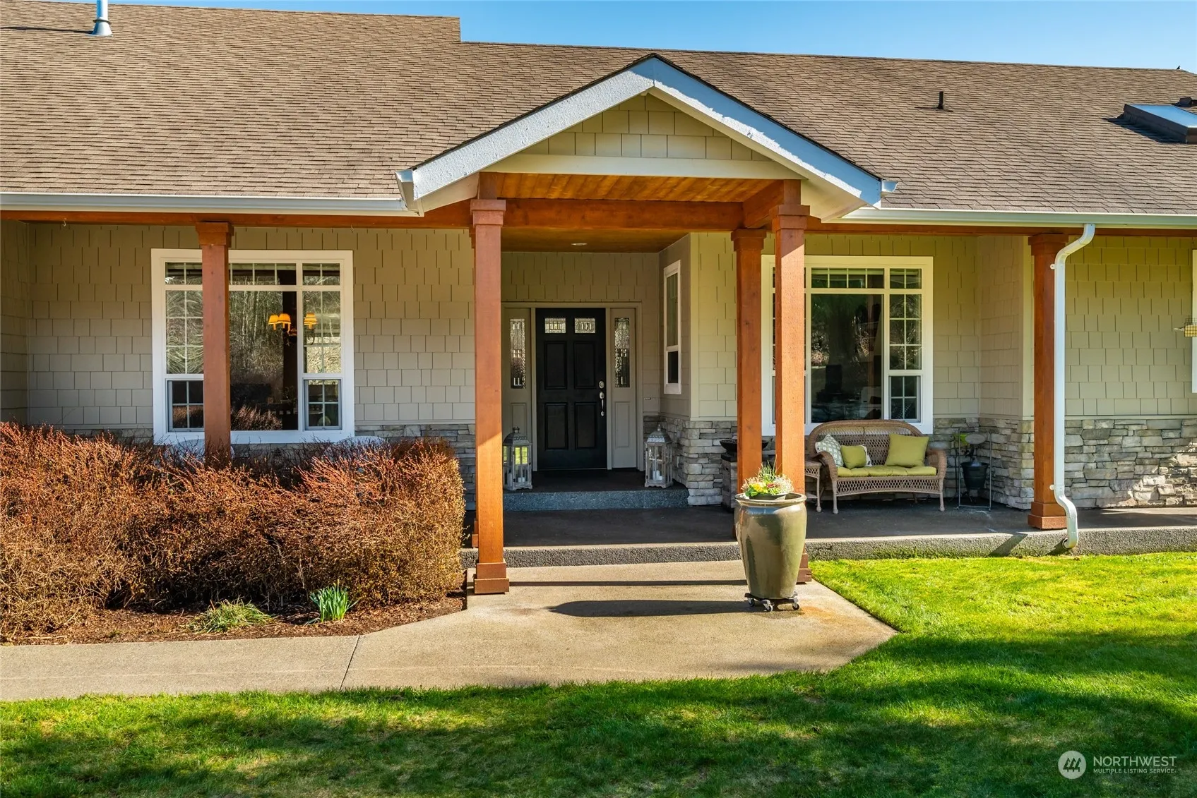 Rare find on Bow Hill! This gorgeous custom-built rambler is in a gated community on 6.2 acres w/2 beautifully landscaped. Great floor plan w/no wasted space & lots of natural light. Stunning kitchen with cream cabinets, hardwood floors, SS appls., large island, & dream walk-in pantry. Great room has gas fireplace & French doors to a large, partially covered deck. Office w/built-ins & window seat. Spacious dining room off kitchen and cozy living room. Generous primary has walk-in closet, bath w/split vanities, shower & soaking tub. Enjoy coffee on the covered front porch. XL 3-car attached garage with cabinets, plus a 30×40 3-bay (1 tall door for RV) shop that is insulated, with power & water. County living, but only 1 mile from freeway!