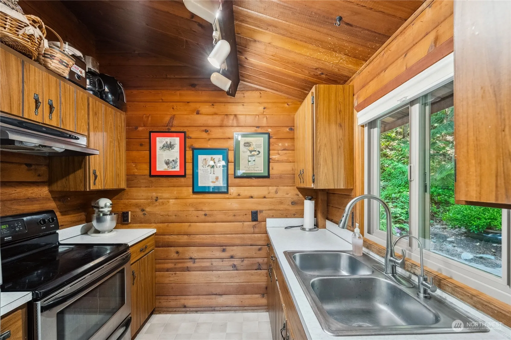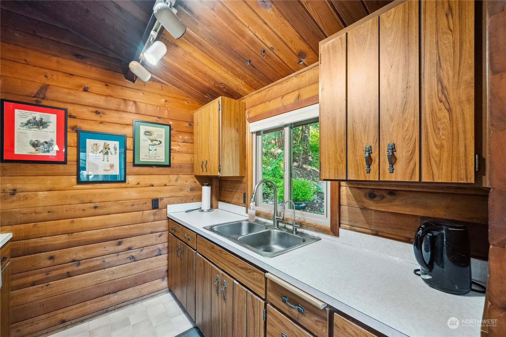 Imagine stepping into a cozy cabin nestled in the woods within Shelter Bay, where vaulted wood ceilings & cedar walls create a warm, rustic charm. The upper level features an open concept living, kitchen & dining space & primary bedroom. A spacious wrap-around deck offers serene views of the wooded surroundings, providing a perfect spot to enjoy the local wildlife. While the lower level boasts additional bedrooms, bath, office space, & rec room. Outside a paver patio with meandering walking paths complement the natural setting. Enjoy community amenities like a marina, pool, & beach access. Just moments away, downtown La Conner awaits with its waterfront charm, offering shops, dining, & scenic vistas. Shelter Bay homes are on leased land.