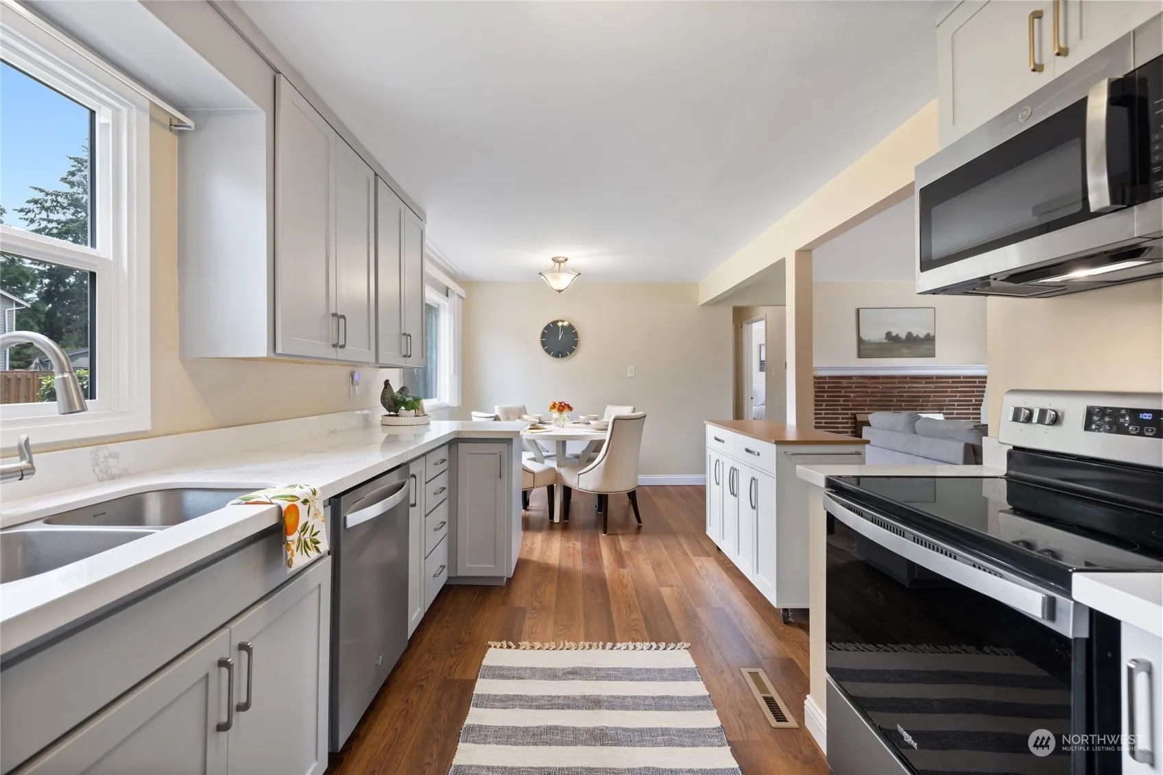 Move in ready, nicely updated 2 bedroom rambler in coveted University Place! Sitting on a 10,500 sq ft well maintained level lot, this property has so much to offer! Over the last 4 years Luxury Vinyl flooring installed throughout, a new forced air furnace & heat pump was installed, a lovely new kitchen – including shaker soft close cabinets, quartz counters & appliance package was completed, and the full bathroom was updated. The exterior was professionally painted and a new roof was installed as well. There is a 1 car attached garage with workspace, and the huge fully fenced backyard has a partially covered patio for year round use and even boasts a sport court! Close to Trader Joe’s, Whole Foods, Chambers Bay, restaurants & services.