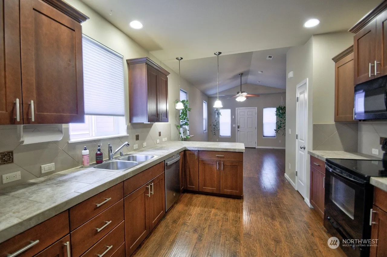 Welcome home to one of Yelm’s most desired communities, Tahoma Terra. With parks, shopping, medical facilities, schools, a golf course and JBLM nearby, the location of this home is hard to beat. The spacious kitchen opens up to the living and dining room separated by kitchen counter seating. This well-maintained home features 2 spacious bedrooms, 2 baths, full height tiled backsplash kitchen and a 1 car garage. The front and rear landscaping is well thought out and easy to maintain.