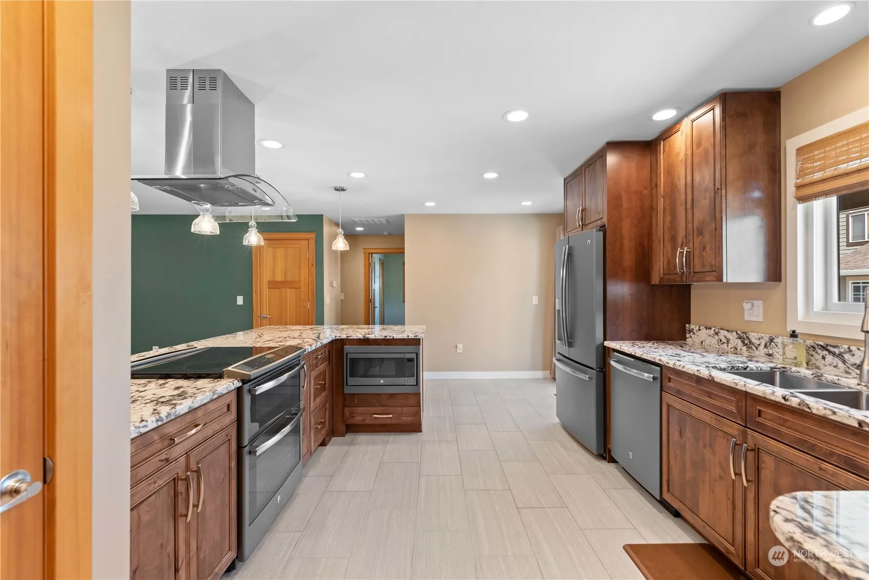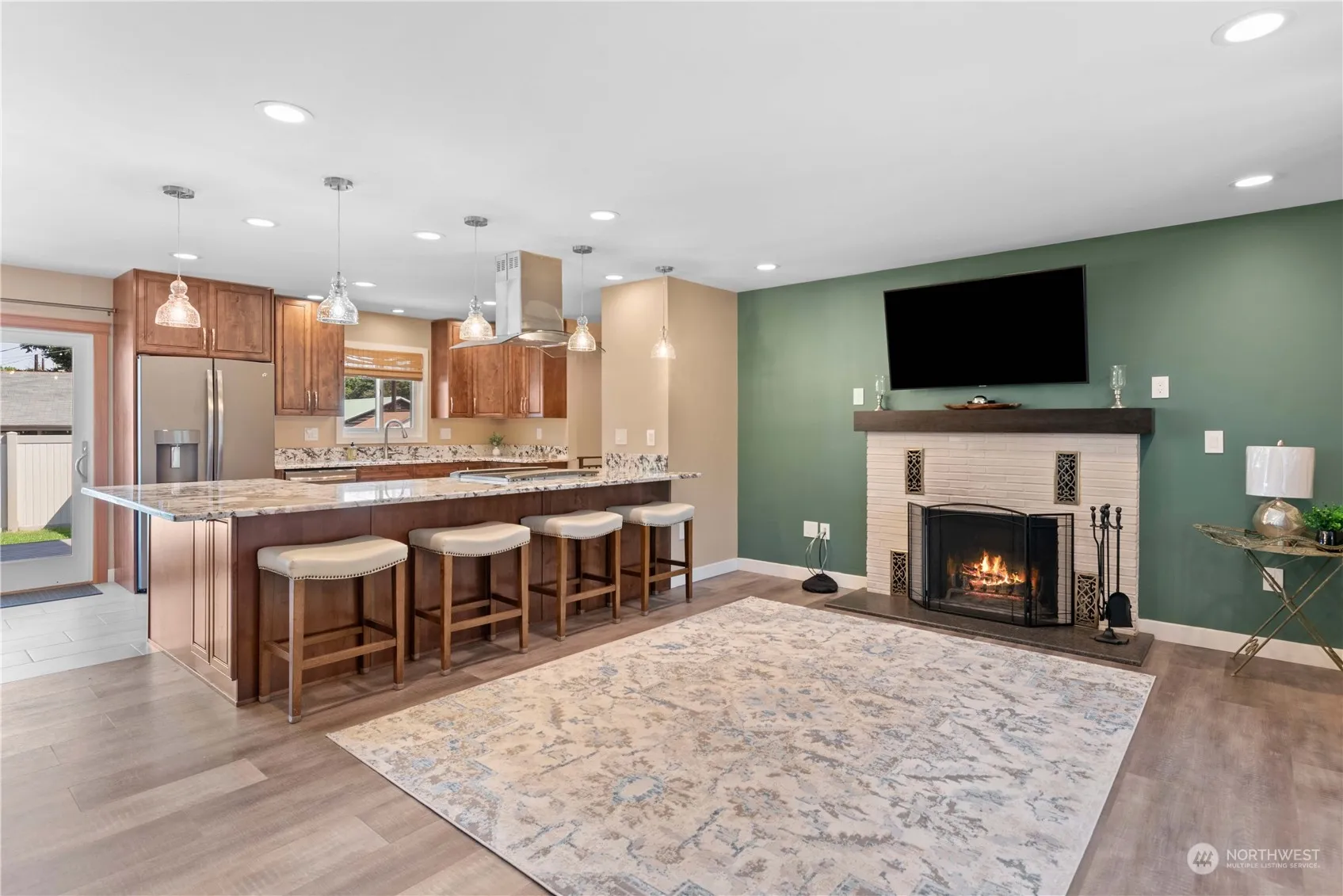 Welcome to this classic 1950’s rambler with open floor plan and full basement! All new plumbing, wiring and new furnace in 2015′! Beautiful LVP flooring in Living Room with brick, wood burning fireplace. Kitchen has custom new cabinetry with extensive new solid surface counters and newer floors. 2 bdr’s up enjoy a beautiful updated full bath w/tile tub surround and dual sinks. Downstairs has 3rd and 4th bdrm’s, 2nd kitchen, family room, 3/4 shower and laundry room. Fenced rear yard, Covered rear deck, large shed w/electricity, RV dump and alley access are a few of the extras! Included upstairs appl: d/w refer, stove, micro & disposal. Incl downstairs appl: micro, small refer and w/d. Hottub included.