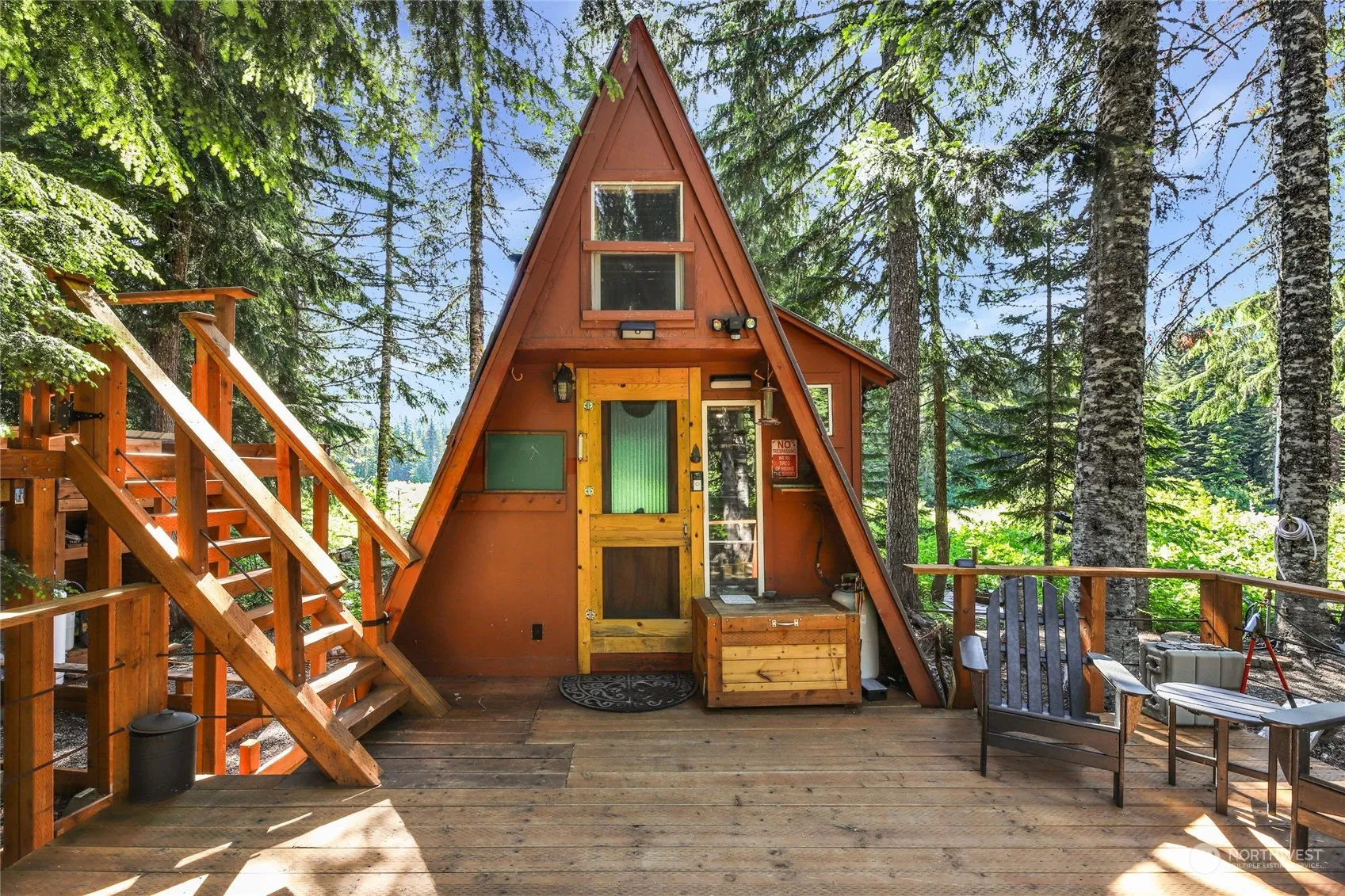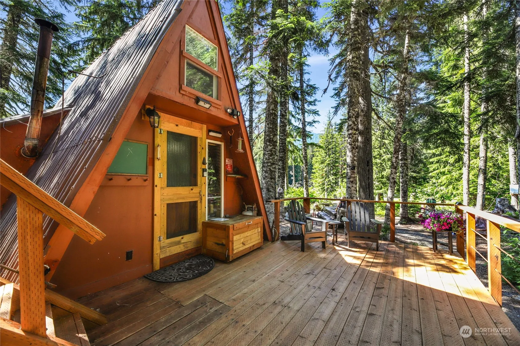Discover tranquility and seclusion on nearly 9 forested acres on Gold Creek only an hour east of Seattle. With 1000 feet of creekfront adjacent to Gold Creek Pond, this property boasts a charming off-grid A-frame cabin, solar-powered for sustainable living. Or build your dream cabin with multiple build sites. Enjoy the spacious lower and upper decks. Three additional structures provide versatility. Ski in the winter and stay cool in the summer. Outside, find a shower, tub, trails, swimming spots, and breathtaking views. There’s a pizza oven and firepit for cozy gatherings. The property is secured by a heavy-duty iron gate and multiple security cameras. A once-in-a-lifetime opportunity to own the largest single property in the SkiTur Valley.