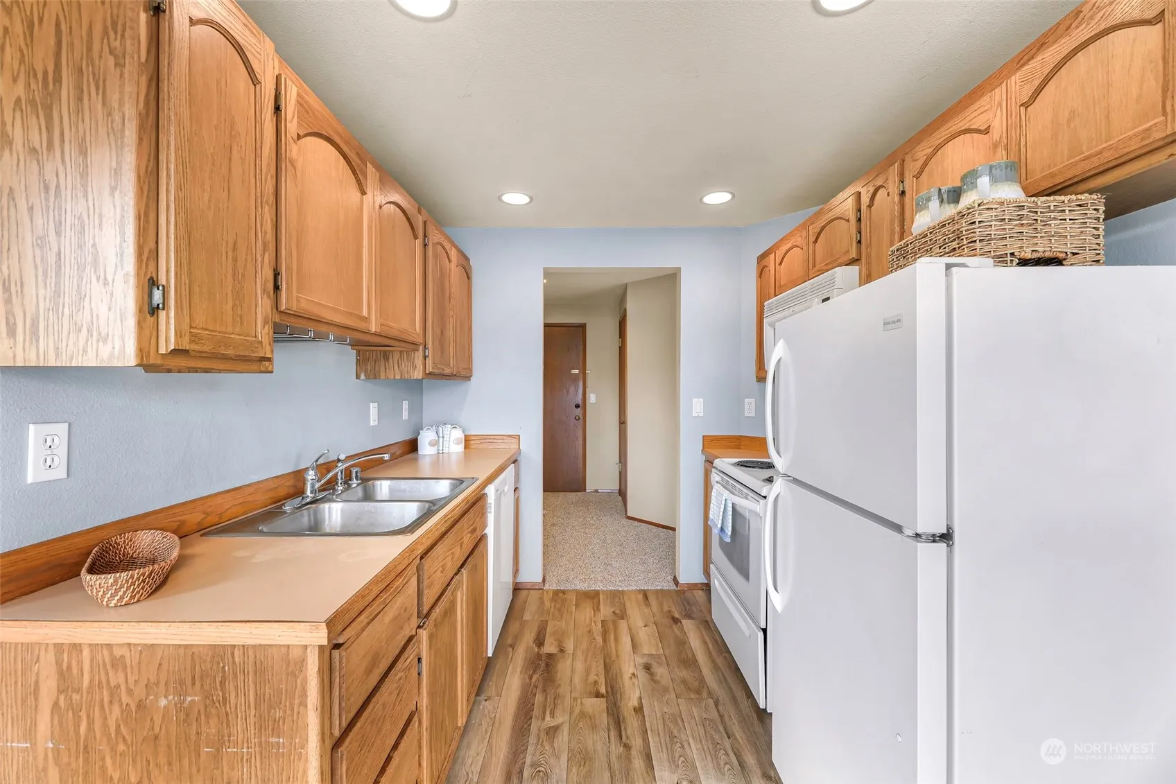 Secure and bright upper level unit boasting large windows overlooking the quaint community quietly nestled in a dead end street. One bed, , one bath, with office / sleeping space, located in the heart of Lynden just minutes to the fairgrounds! Fresh flooring throughout this efficiently designed open concept. Private outside entrance to building at rear where covered parking and locked personal storage (Pls verify approx 9’x4’x4′) is allocated, as well as entry at front entrance. Enjoy the common area amenities including game/exercise room, laundry facilities, wet bar, and cozy gathering space with fireplace. Dues include water, sewer, garbage, lawn service, and common area maintenance. No rental cap allowing for flexible living options.
