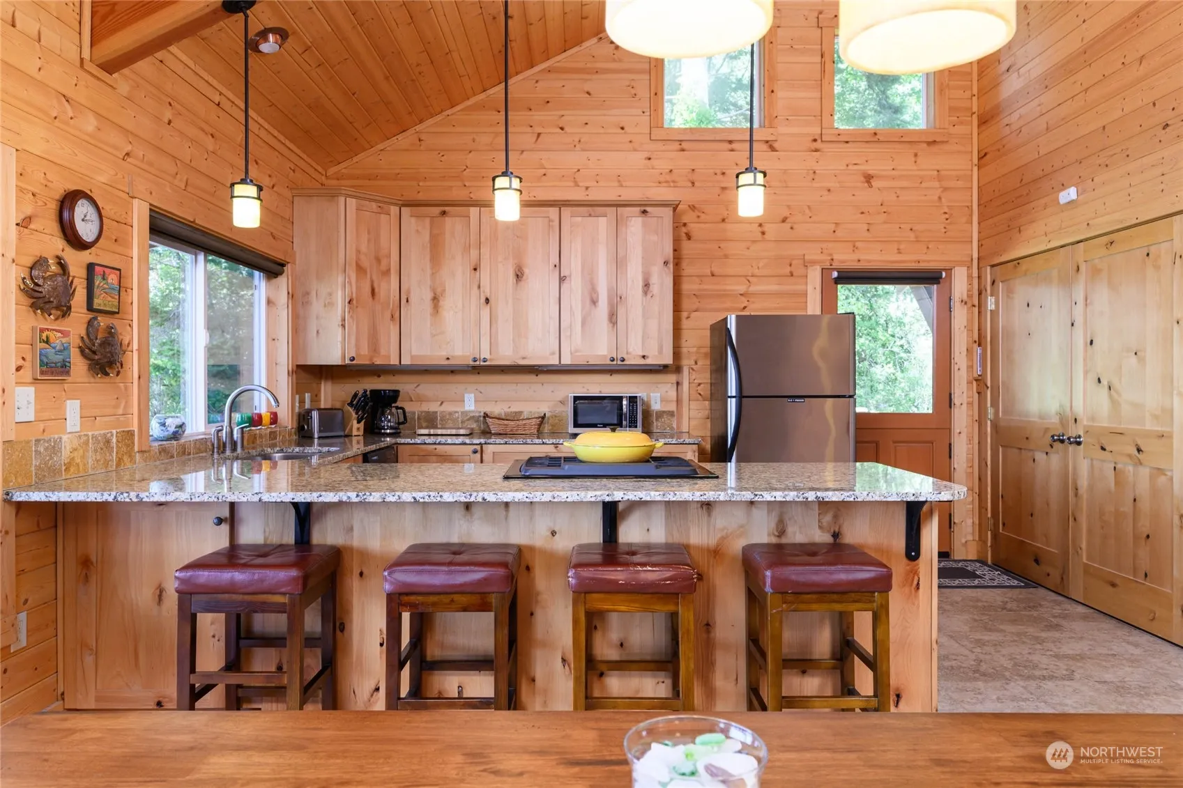 Imagine living on one of the San Juan Islands! Come experience luxury living on Sinclair! This 2-parcel estate boasts 100′ of sandy, no-bank waterfront with breathtaking west-facing panoramic views of the islands. Completed in 2012, the custom-built craftsman home spares no expense. Select pine interior with vaulted ceilings and exposed beams, hardwood flooring, granite countertops in the kitchen and baths, a cedar exterior, and a Champion metal roof. Three sets of French doors open to an expansive deck, creating a seamless indoor/outdoor flow for entertaining and stunning views from the kitchen, living area, and primary suite. 20 minute private boat ride or Passenger ferry service from Anacortes or Bellingham. See amenities list!