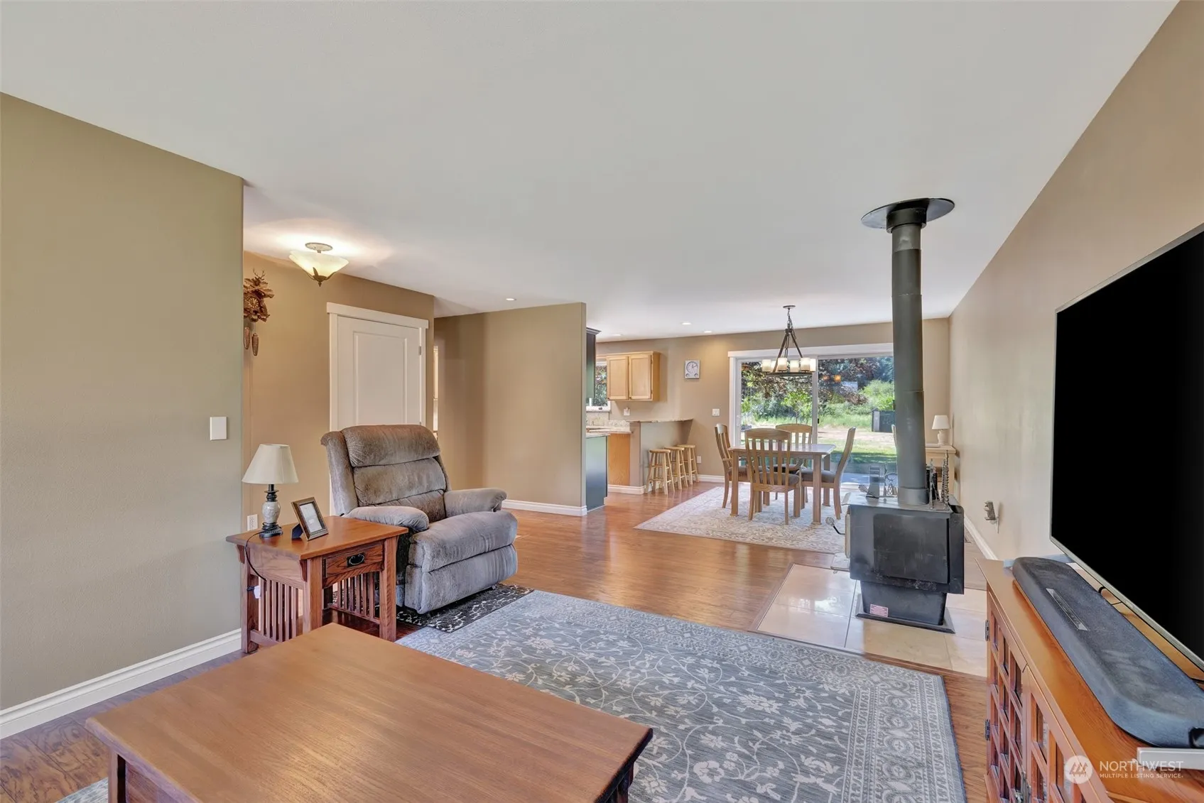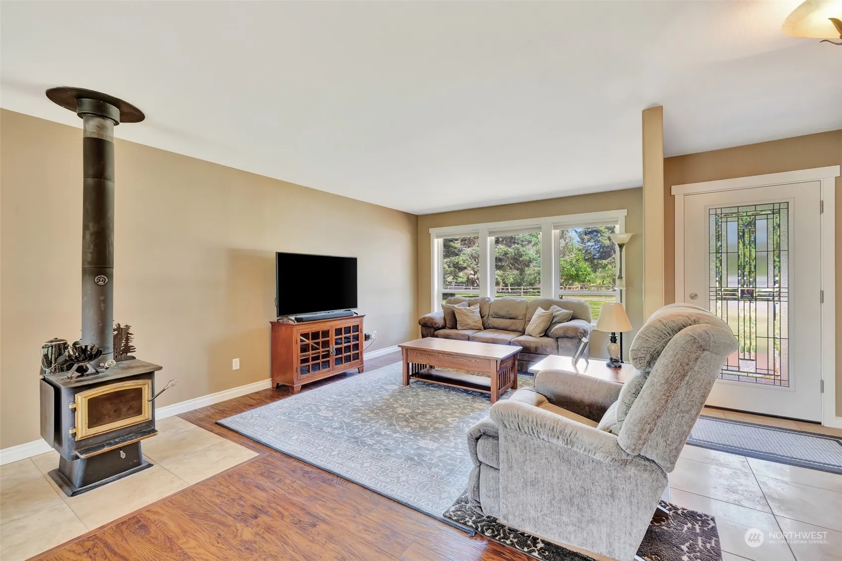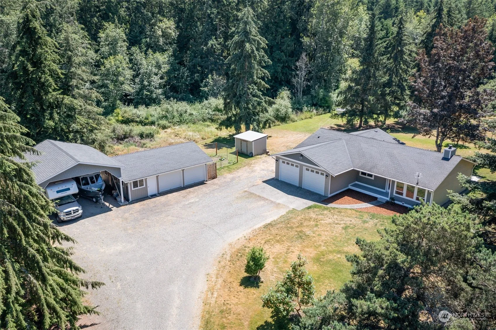 Tucked away at the end of a private road is the simple homestead you have been waiting for! Have everything you need for easy country living less than 5 min from downtown Sequim. Privacy is created by gated driveway&border of mature trees, backed by acres of state land. Home has been beautifully remodeled-all new hardiplank siding, new paint inside & out, new Milguard windows & new slider leads to amazing backyard w patio, fruit trees, space for garden & animals. Granite countertops in kitchen. Pergo laminate flooring thru out house, hw in primary, forced air heat & wood stove. Primarybath has travertine double shower, heated floors, w dual hickory vanities. Covered RV/boat parking&over 1300sf of garage space, pvt well&irrigation fed pond.