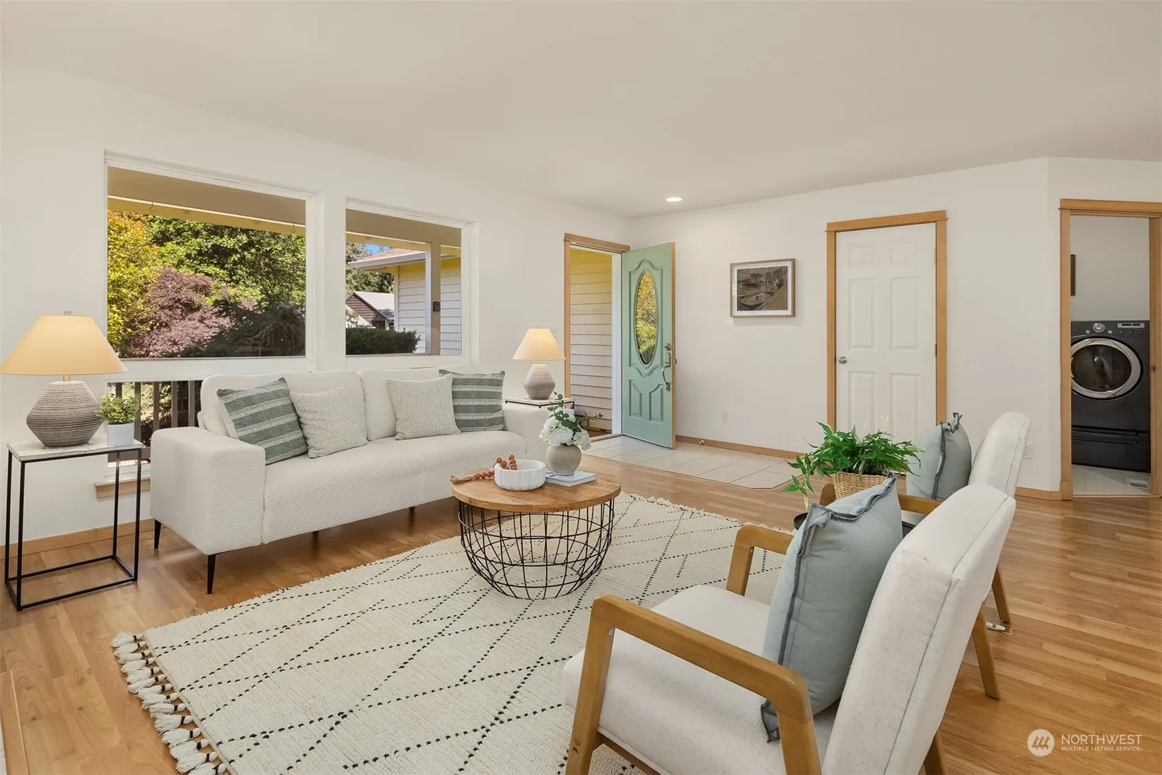 Look no further! Just what you have been searching for…affordable, refreshed, one level home in desirable Mariner’s Landing neighborhood. Perfect 3 bedroom / 2 bath house with lovely mature landscaping. Western facing covered front porch for afternoon relaxing. The kitchen-family room opens onto a cozy backyard deck for grilling and dining al fresco. Interior paint, new appliances and new carpet in 2024. New roof and exterior paint in 2023. This neighborhood is across the street from the high school, and just blocks to Middle School and Elementary schools. Walkable to historic downtown Poulsbo. A short commute to either Bainbridge or Kingston ferries. 20 minutes to Naval Bases. Great location! A must see property!