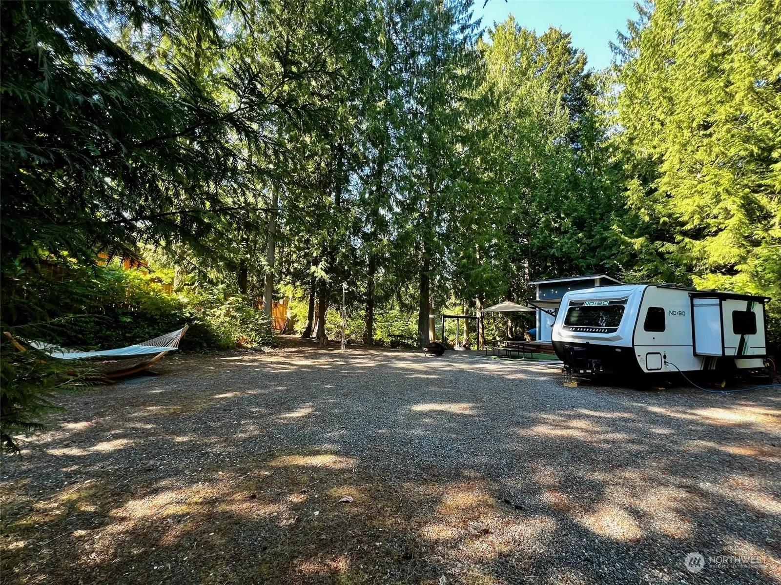 Lakefront Campers Paradise! Buy today, camp tonight with 55 ft of waterfront & all furniture included for your convenience. Property updates include: TWO full RV hookups including septic, two 30 amp RV drops, 3 water hook ups, deck extension, louvered pergola, 12×12 shed and bunk house with recent roof, 2 bedroom septic with new pump. Shed is ready for more than storage! Public restrooms and boat launch across the road. 2020 Forest River No Boundaries 19.5 ft Travel trailer available for purachase as turn key retreat. Gated Community features 6 private beaches, swim area, community pool, pickleball courts, 14 miles of trails and so much more. See attachments for full list of property updates and community amenities.