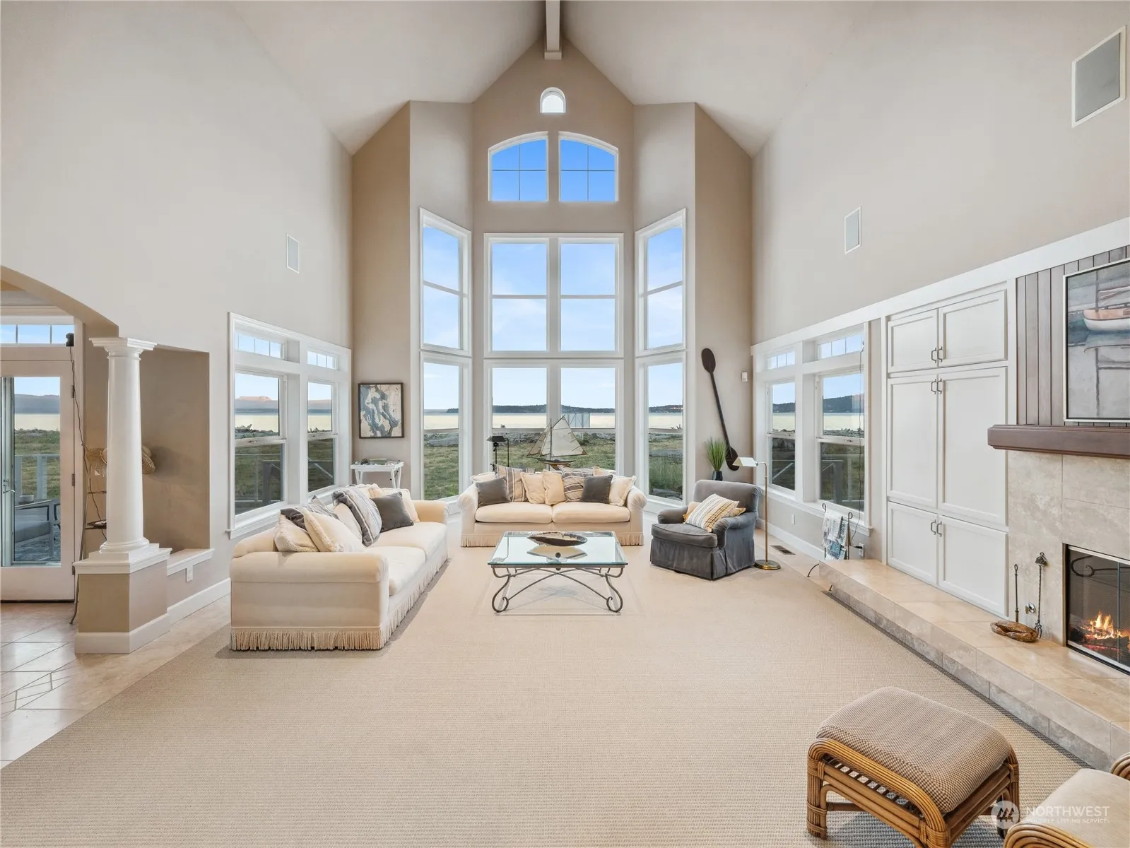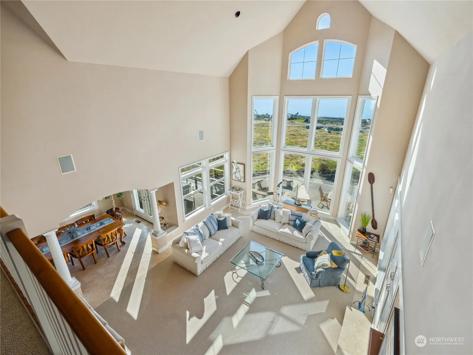 Imagine waking up to the sound of waves lapping just beyond your doorstep. This beachfront oasis beckons with its high-end luxury and stunning design. Step into the living room, where soaring two-story ceilings and a catwalk overhead create a grand yet cozy atmosphere. The main floor boasts a serene primary bedroom, complete with French doors opening to a deck, and a luxurious sauna tucked away in the ensuite bathroom. Upstairs, Jack and Jill bunk rooms connect through a charming loft bonus room, perfect for gatherings. A separate guest suite above the garage ensures privacy and comfort for visitors. Outside, lush landscaping and meandering paths complement the home’s coastal charm, offering a tranquil retreat like no other.