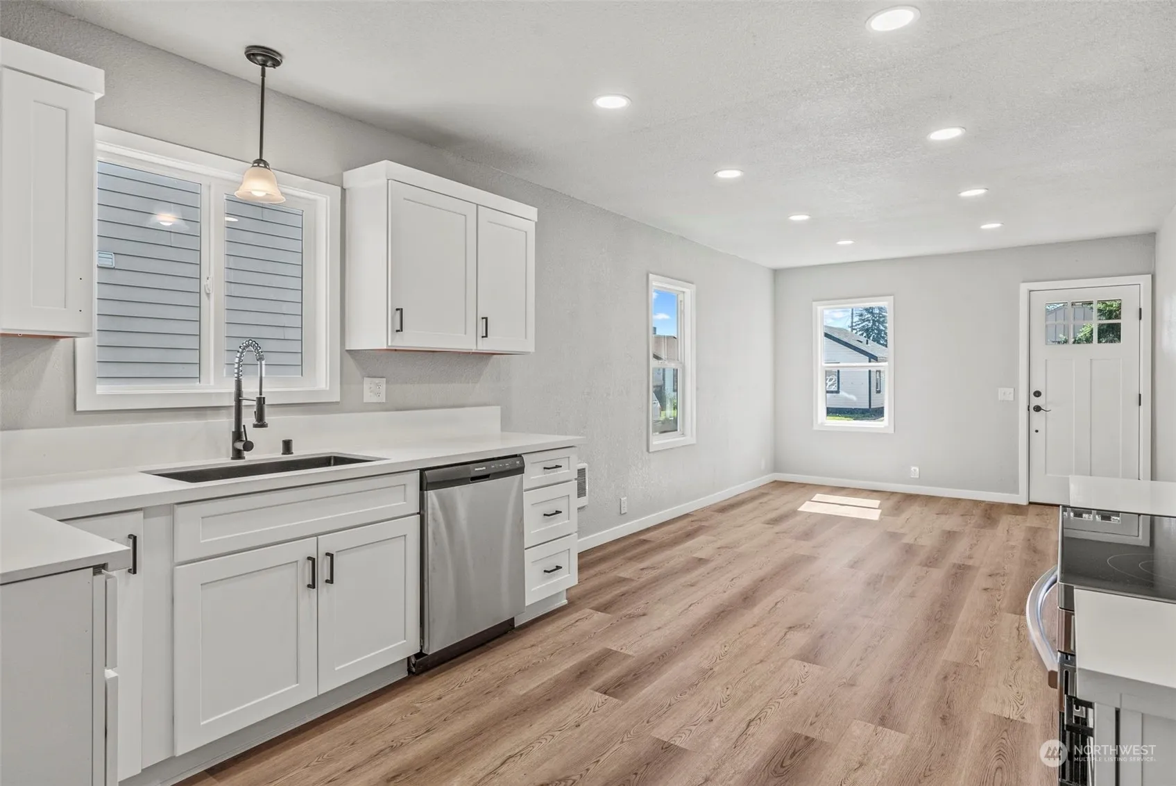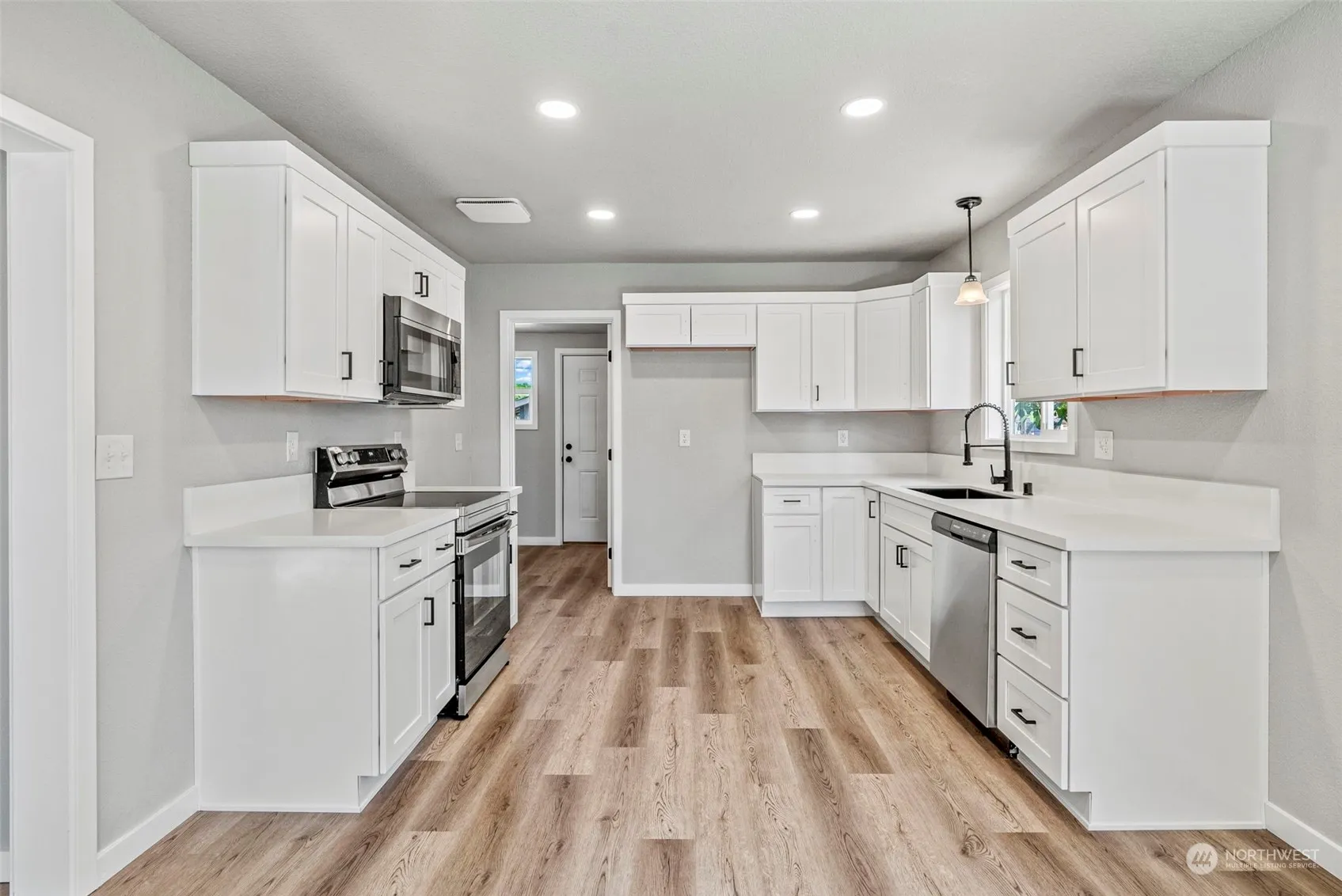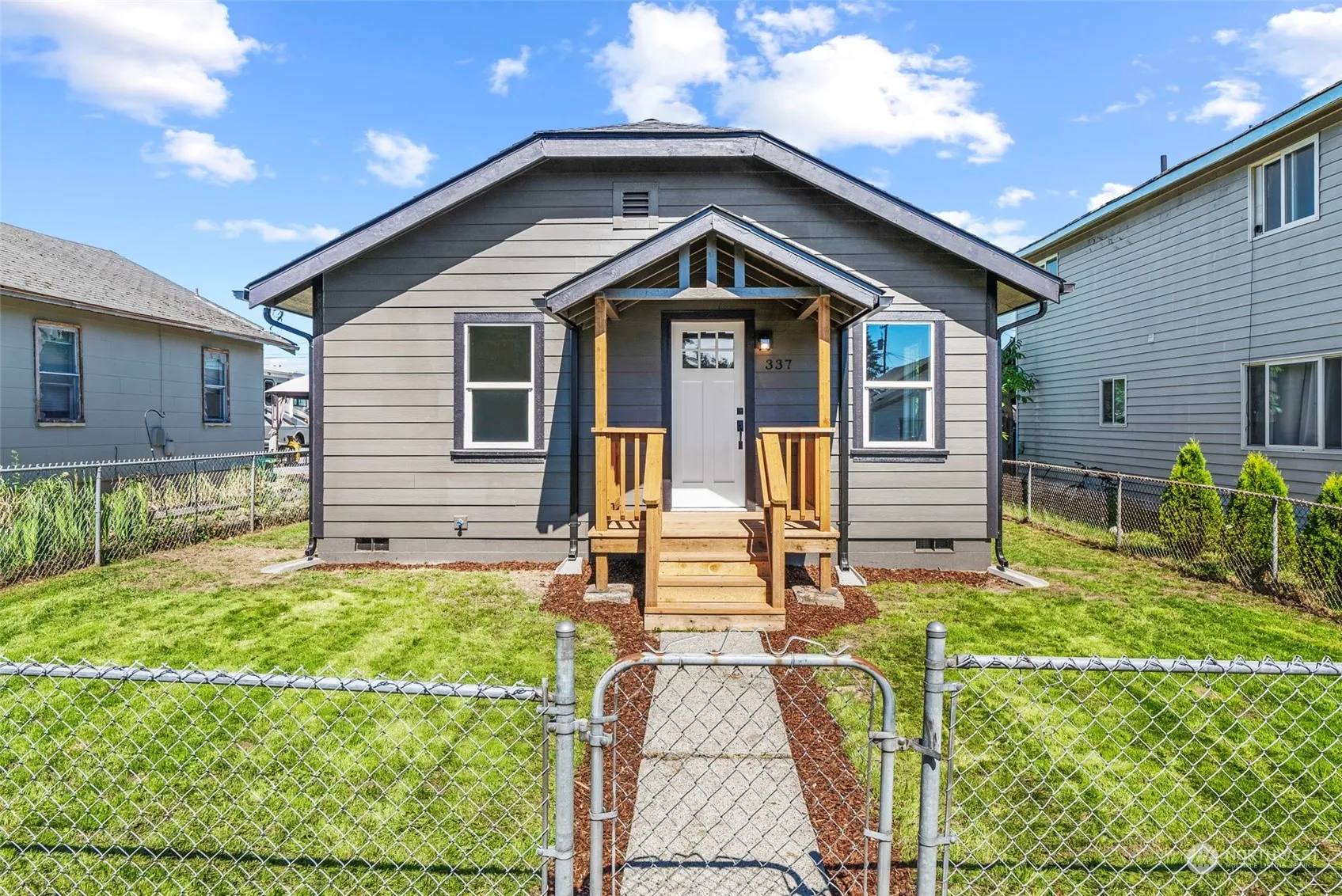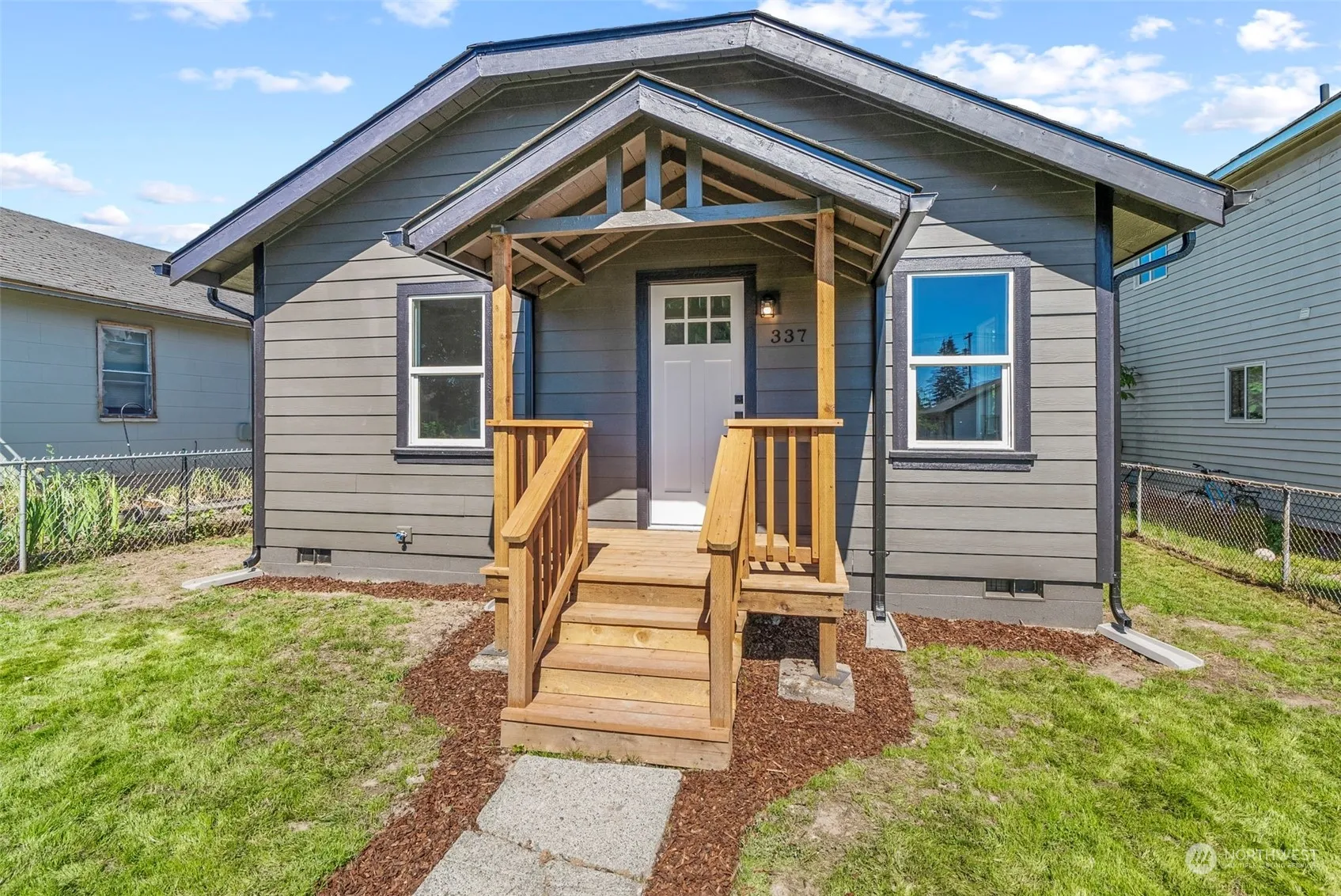 Come see this completely remodeled 2bed 1bath home with a large 2 car garage/shop! Home features all new custom soft close cabinetry, quartz counters, Black SS undermount sink, floor coverings, paints, doors, trims, fixtures, and more. Home also has all new concrete plank siding. Outside you will enjoy you large back deck, fenced front yard, 2 car shop, driveway parking, alley access, and low maintanance landscape. This is a very well done remodel with nice finishes. Come check it out