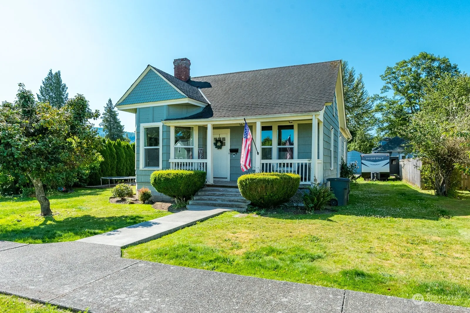 Make your small town home dreams come true w/ this BEAUTIFUL completely remodeled cape cod home! Stay cool in this summers heat w/ the newly installed A/C. Yes this 1901 home has A/C, new plumbing, electrical, appliances, finishes, & professionally landscaped. Enjoy evenings or mornings on either one of the beautiful private patios. Have fun on the finished w/ wood chips play ground that stays (Trampoline included!)! All of your storage needs are covered w/ a convenient shed off the driveway in the back alley for private parking. Enjoy the RV parking for additional space. Mature apple & plum trees are producing fruit for you to enjoy each year! The home has a main floor primary bedroom. Bonus loft space upstairs and 2 additional bedrooms!