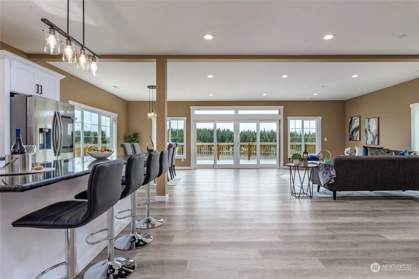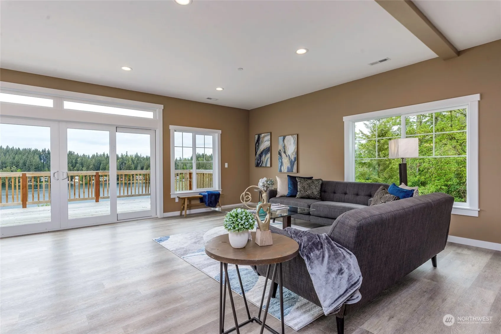 Stunning New Clear Lake Timber Lodge w/ Panoramic Lake Views! Explore the spacious & open floor plan designed to capture the views from all around, featuring a wrap-around deck just off the living room. Well-appointed kitchen boasts matching stainless appliances, durable quartz counters, plentiful cabinetry & a large prep island w/ bar seating! Primary bedroom offers a relaxing escape from the day-to-day, complete w/a private balcony, full ensuite bath & large walk-in closet. Additional bedrooms are ready to adapt to your various needs & the rec room downstairs is certain to impress! With recreation at your fingertips, this property offers over an acre of space for gardening, hosting celebrations & storing your RV or other outdoor gear.