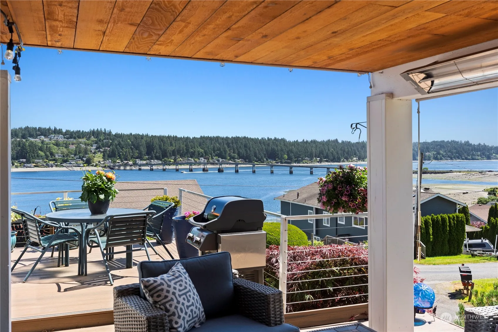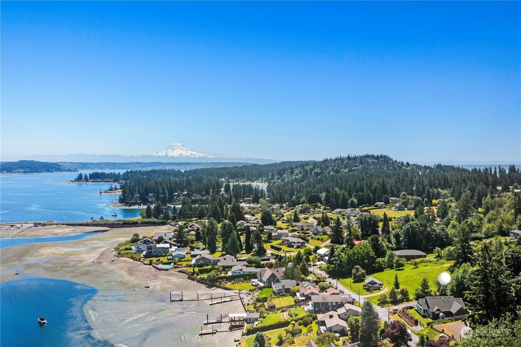 Experience the breathtaking beauty of Fox Island from this exceptional view home in an amazing location on coveted Bella Bella Drive! Enjoy panoramic views of Hales Passage, Fox Island Bridge & Mt. Rainier, with abundant marine & wildlife sights from every turn. Entertain in the fabulous All-Season Sunroom adjacent to the great room, complete w/2-way FP, or unwind in the heated gazebo on the patio overlooking the sound. Coastal vibes & modern luxuries throughout- including main floor Primary, stunning updated kitchen, custom wine room, guest suite on main, & A/C for year-round comfort. Just steps to the Demolay Sandspit & Fox Island boat launch, this home offers a perfect coastal retreat. Relax, savor every sunset, and be inspired here.