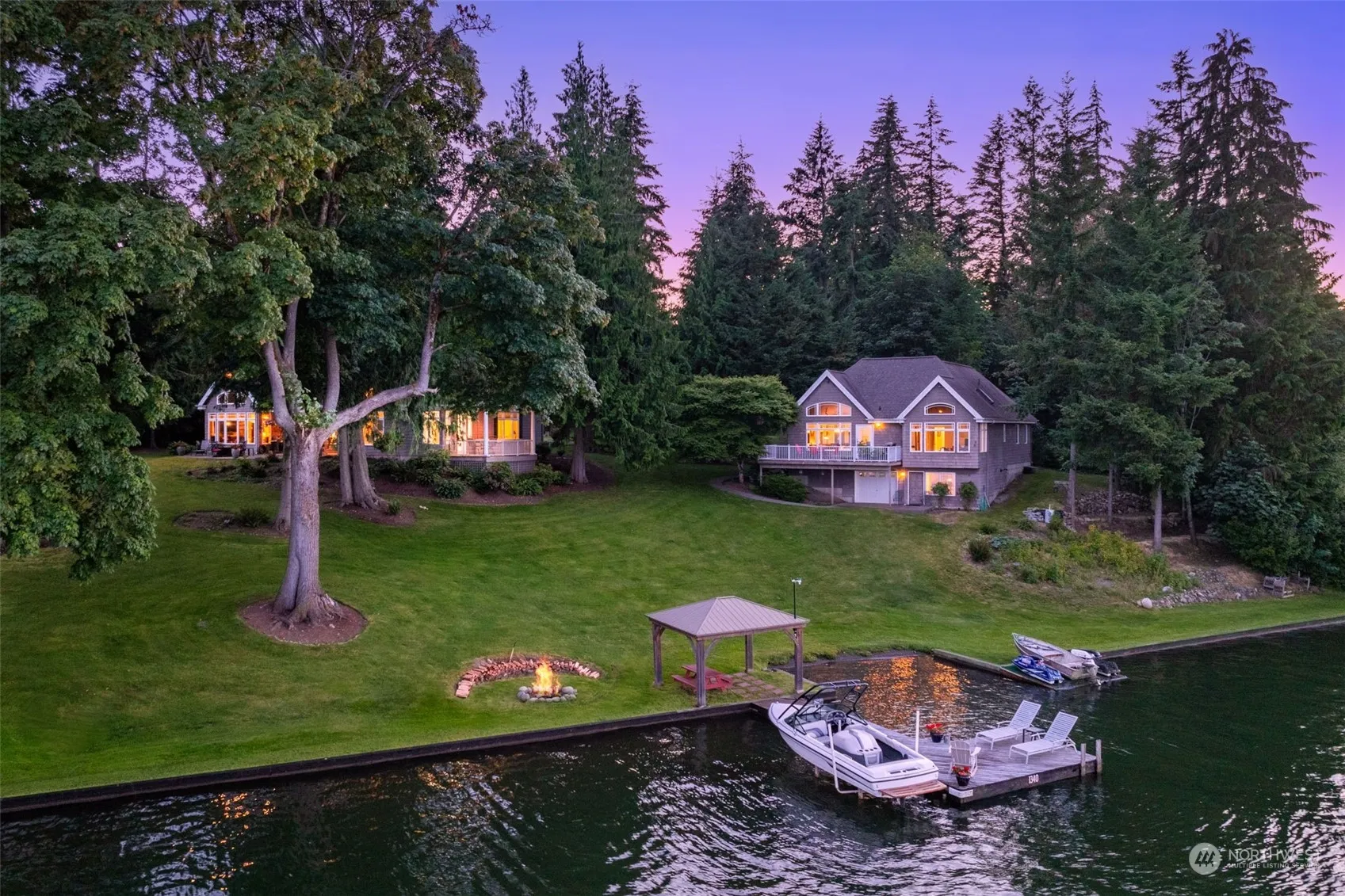 Arguably one of the best lots & views on all of Lake Tapps. Beautiful estate property w/ 2 homes, 2.46 acres & 300+ ft of water front. As you enter in to the main home you will be blown away by the view of Rainier & Cascades. The home is traditionally laid out w/ a large family room that opens to the kitchen, formal dining & living, 2 guest beds w/ Jack-Jill bath & a large primary suite w/ a perfect view of Rainier, walk in closet, large bath & private deck. At the guest house you will find a spacious kitchen that opens up to a family room & beautiful views of Tapps. There is a large bedroom & ¾ bath w/ a large closet & laundry. Head to the back of the home & you will find an additional bonus room & large work shop for your lake toys