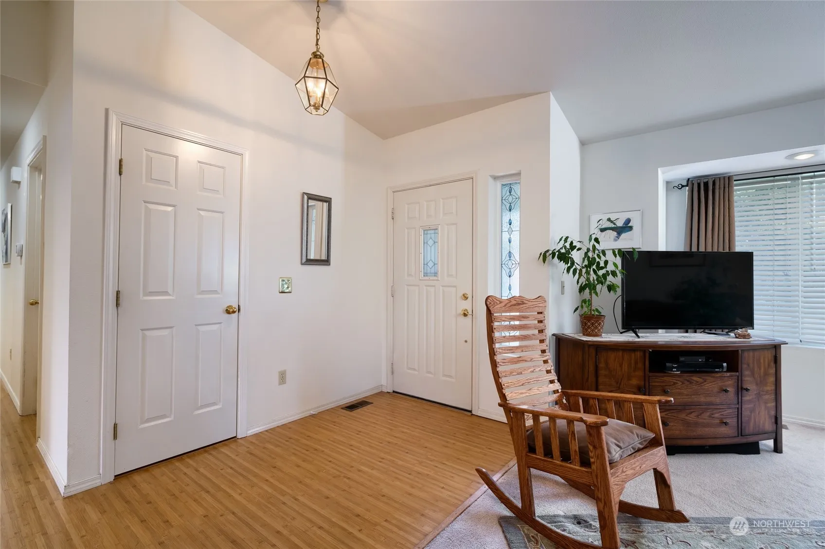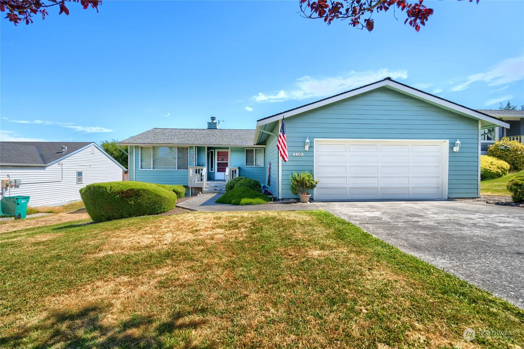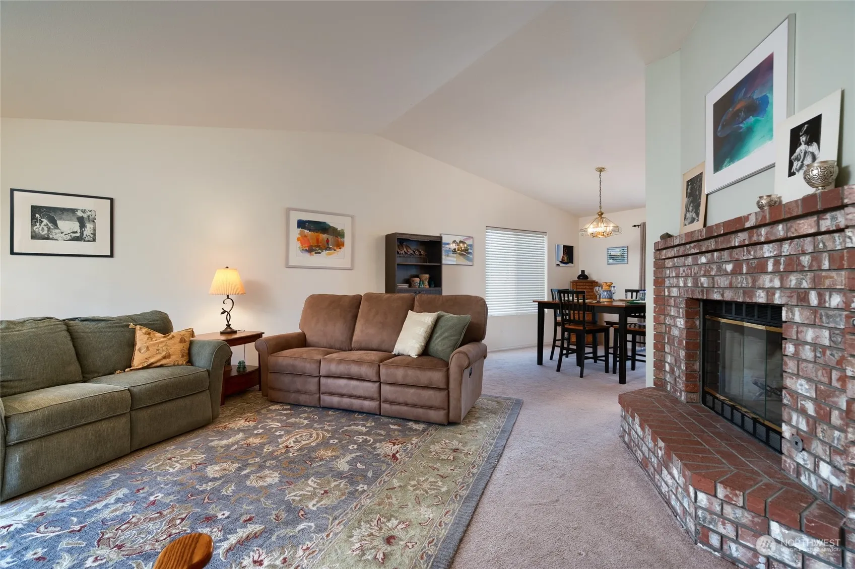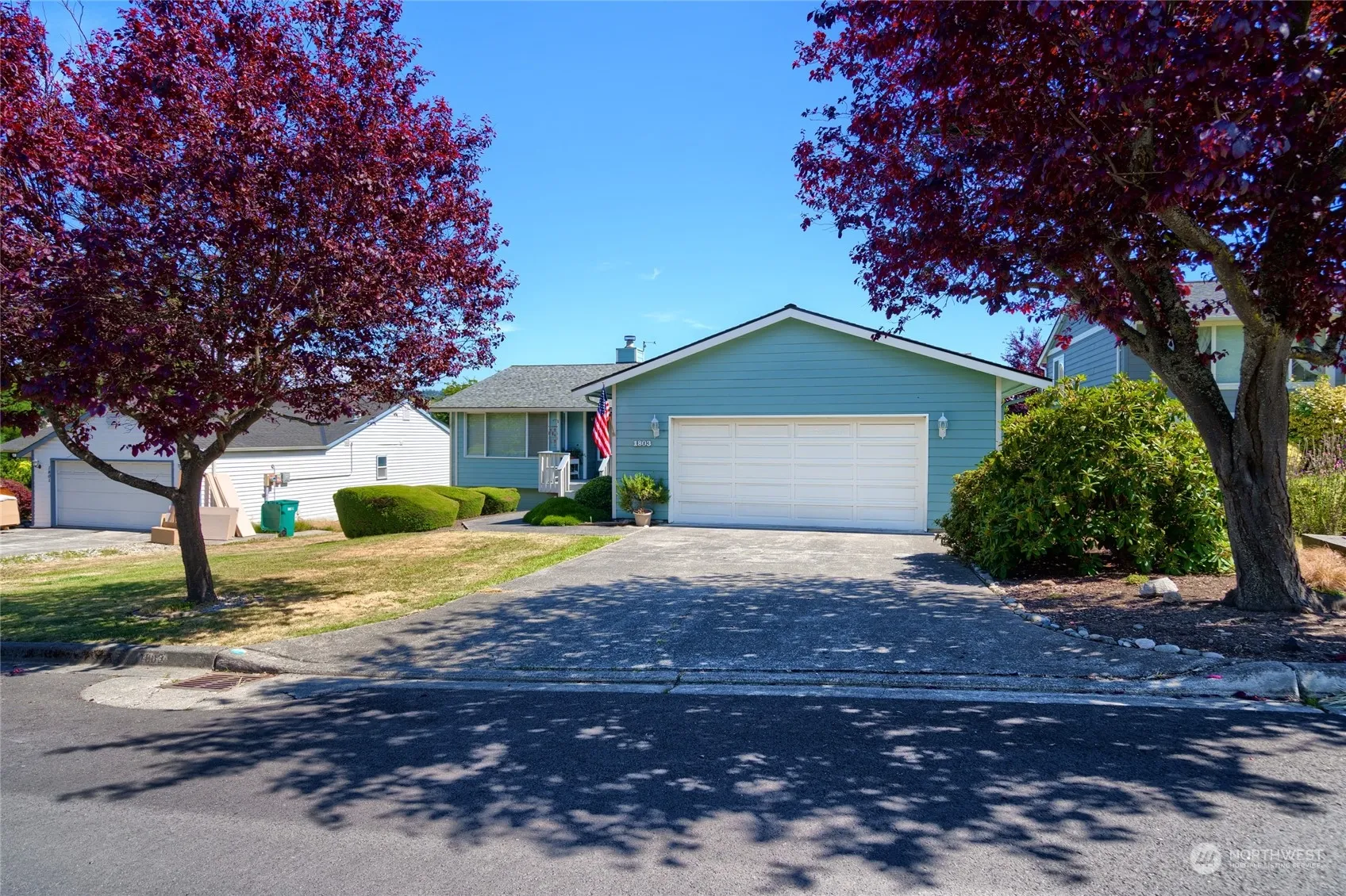 Experience the perfect one level home at Skyline! This move-in ready 1723+/- sq ft Rambler is beautifully maintained and full of natural light. With 3 bedrooms, 2 baths, Hardy concrete siding, and a 2015 Comp Roof, it offers a 2-car garage, vaulted ceilings, a cozy fireplace, and a spacious open kitchen with an eating bar. The dining area features a slider that opens to the deck, and the main bedroom boasts a bath and a slider to the charming backyard with raised beds. Enjoy the great location with access to Washington Park and all the fantastic Skyline community amenities, including Pickle Ball, a private beach, parks, and cabanas!