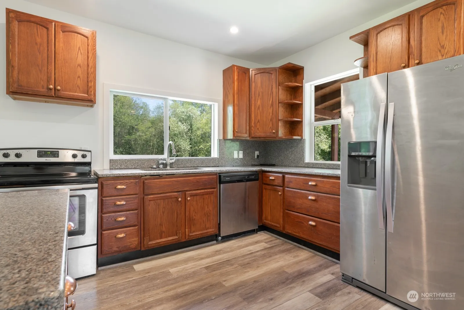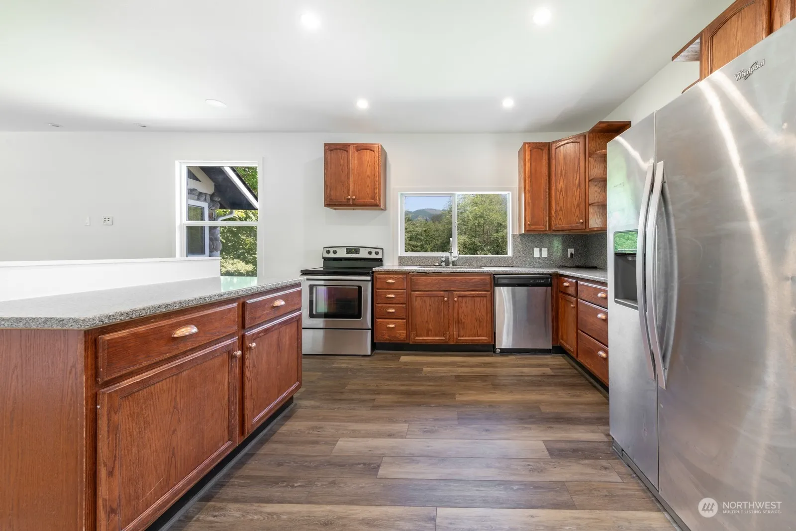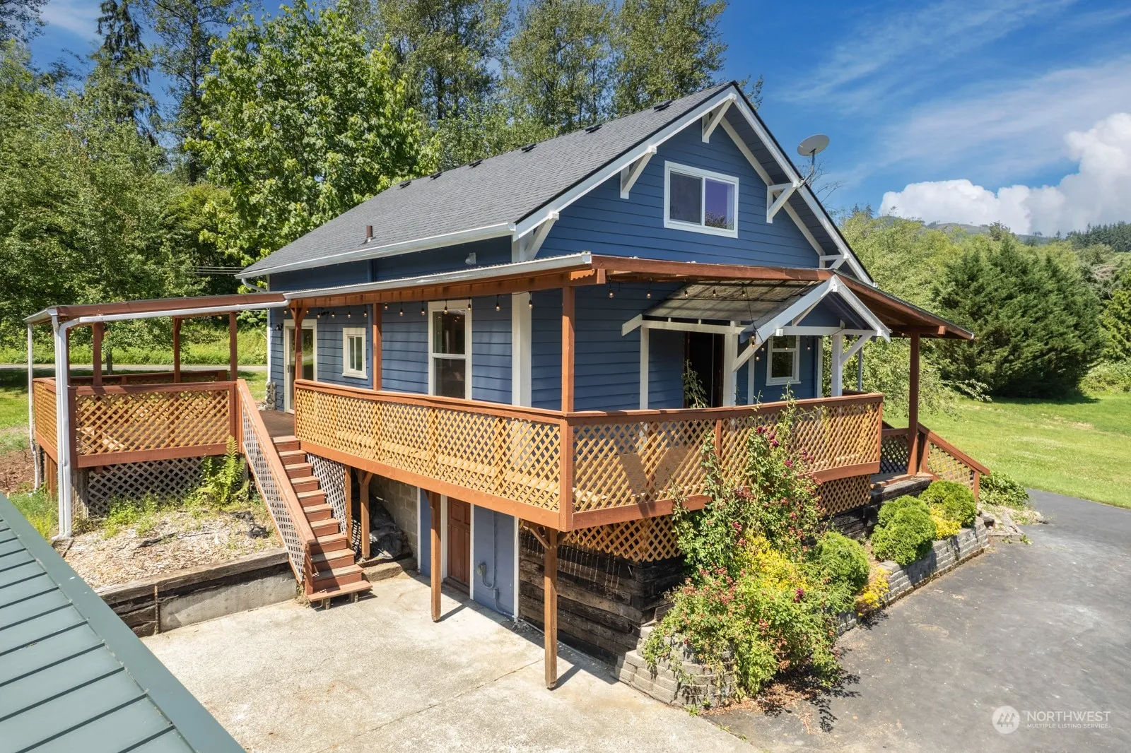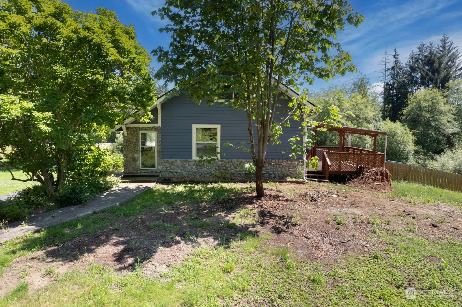 Charming Remodeled 1 1/2-story Arlington home on 11.66 acres(ROOM FOR DADU) in the desirable Grandview community! Move-in ready 2 bed/1 bath with new roof, drywall, electrical, HVAC, flooring, paint. All the heavy lifting has been done on this house. Remodeled down to the studs. Beautiful lot with a mix of grass, mature fruit trees and forest. Opportunity to build trails, mini-farm. Partially finished walk-in height basement with built-in cabinets, fiber-optic cable for office/storage or turn into a living space. Outbuilding for extra storage or living space. Covered deck off the primary bedroom. Paved driveway with room for RV/horse trailers. 10min to downtown Arlington, Centennial Trail, Pilchuck, and I-5 access. Must see to appreciate!