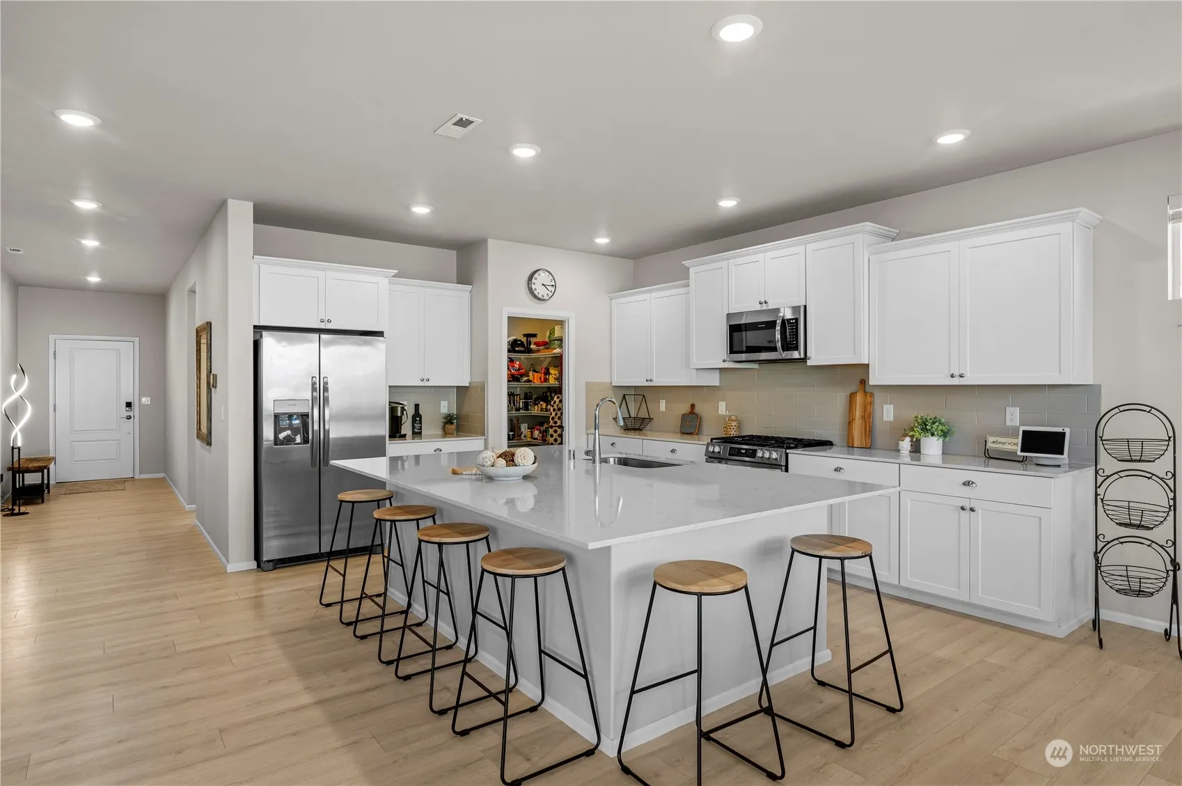 BONUS 1% Rate Buy Down! Welcome to the sold out Chandler’s Reserve, A 2023 new construction community by Lennar! This practically brand new home is your second chance at this beautiful neighborhood located in the heart of Stanwood. The Meridian floorplan features a spacious entry way with high ceilings for a very open concept main floor living space. The main floor has one bedroom/office, 3/4 bath, living room, dining room, and a stunning kitchen w/a massive island w/eating space, walk-in pantry, & ss appliances. Upstairs has a large bonus room/loft, 3 bedrooms, full bathroom, luxury size primary bedroom, ensuite & huge walk-in closet. Backyard has a perfect covered patio w/plenty of flat usable yard space & shed. 2 car garage. AC/Heat Pump