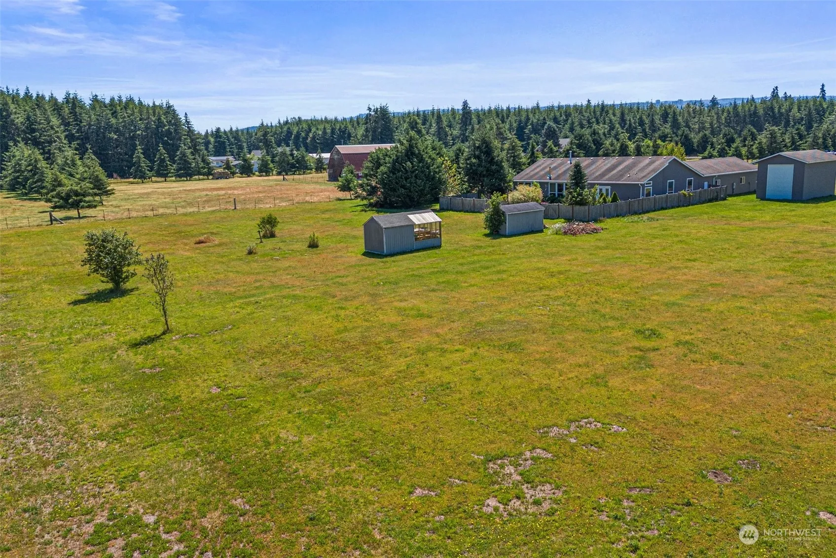 Nestled on 2.69 acres, this stunning property offers a blend of spacious living & modern amenities. The home boasts 3 bedrooms & 2 baths. The impressive vaulted 12′ ceilings create an airy & open atmosphere. The master suite features a luxurious 5-piece bath, complete with a jetted tub, & a cozy den perfect for a home office or reading nook. French doors in the bedroom & kitchen lead to beautiful outdoor spaces, while expansive windows throughout the home flood each room with natural light. Car enthusiasts will appreciate the attached 4-car garage, & a detached 25 ft RV garage for additional storage. The fenced backyard provides privacy & safety, enhanced by a full electric fence for dogs, making it an ideal sanctuary for both you & pets.