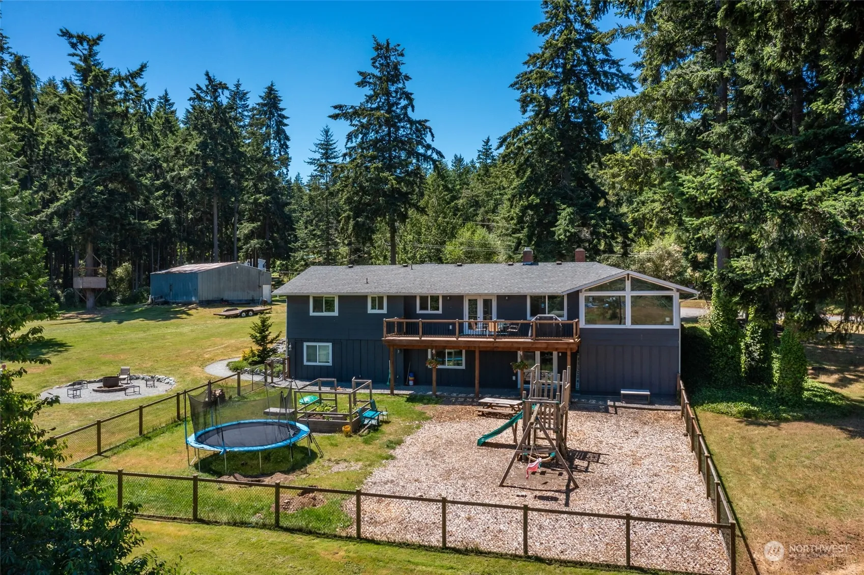 Set on 1.47 park-like acres, this NW retreat’s where the hard work has been done & summer can take center stage. W/3194 asf highlights: an impressive kitchen w/granite counters, ample storage & seamless transition into a gorgeous Great rm–w/beamed ceilings, h/w floors & wall of windows framing the bucolic setting. The main-level primary has a luxury w/i/closet & ensuite w/designer elements & heated floor. The lower level includes a Rec room, 2 bdrms, an eat-in kitchen, full bath & separate media/flex space—creating countless ways to build value through function! Add in a quality heat pump, pre-inspection, a huge detached shop, RV parking, & variety of alfresco spaces that encourage you to soak up the sound of friends, nature, & being Home.