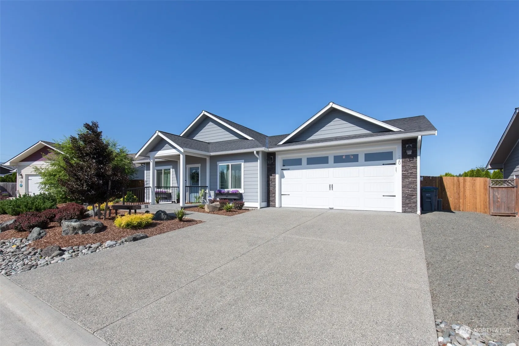 Meticulously cared for 3 bedroom 2 bath home in Eagle Mountain Estates. Built in 2019 by CA Anderson Homes and has high quality selections through-out the home. No step entry from the garage allows for ADA accessibility and has an open layout living room , 36″ doors to all rooms, large hallways and lots of hard surfaces. Kitchen is spacious with a walk in pantry, granite countertops, oversized island, and engineered hardwood flooring. Vaulted ceilings and a propane fireplace in living room. Primary bedroom leads to oversized bathroom and WIC. Guest bedrooms are away from primary bedroom. Back yard is great for entertainment with a large deck off the covered patio. Rainbird Irrigation keeps grass green and a 5×8 garden shed for tools.