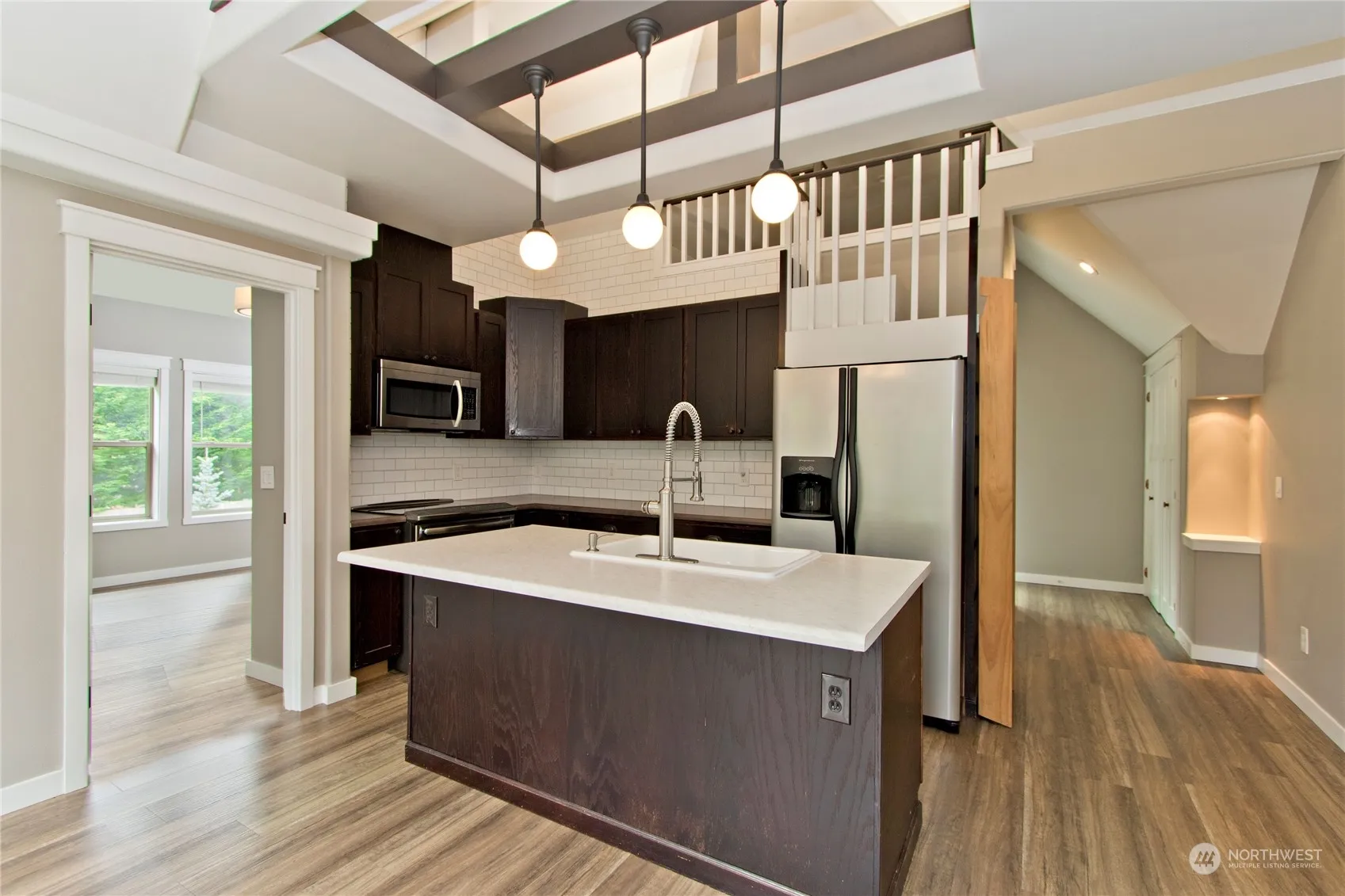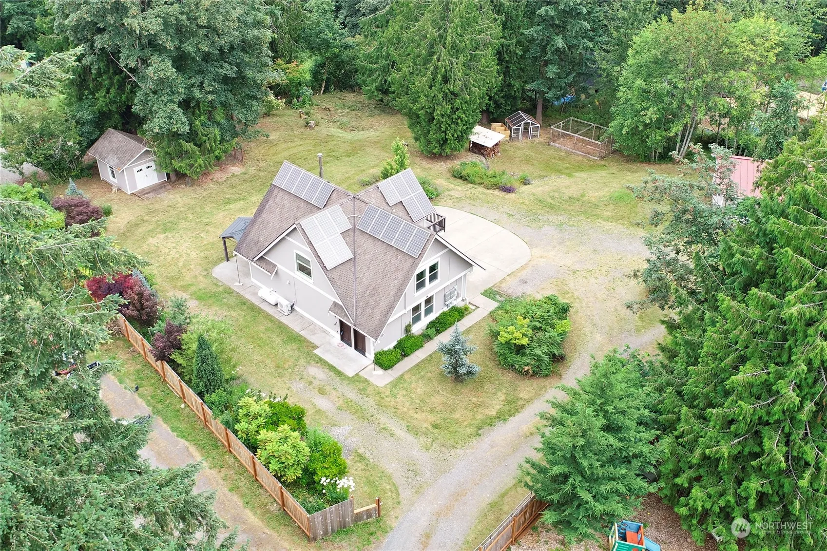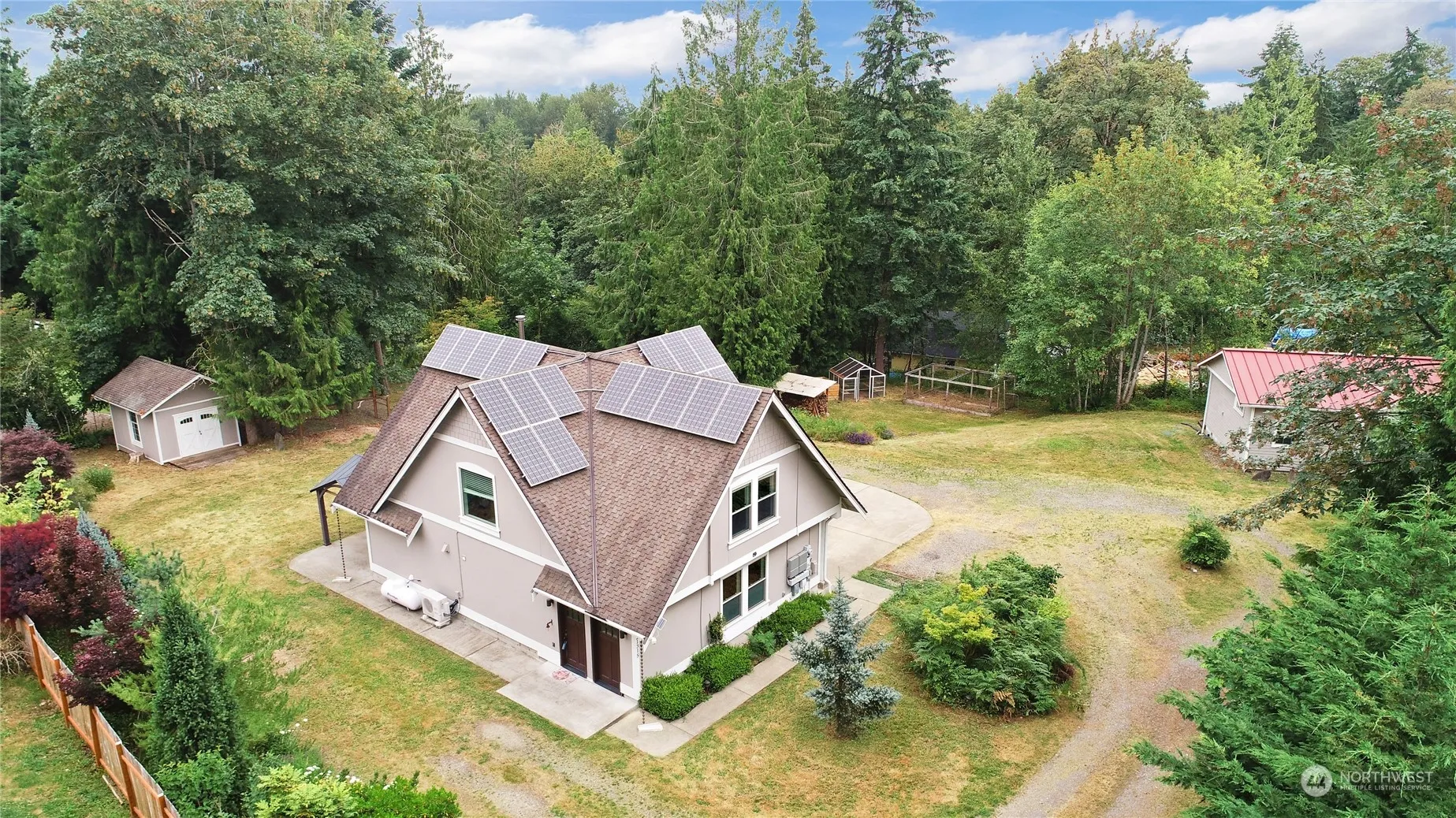 Unique property with two structures in Lake Tapps countryside. 1 bedroom home with loft (possible 2nd bedroom) complete with 1079 sq ft of fabulous shop space featuring stunning kitchen, bedroom, living room, woodstove view deck, solar panels, ductless AC and tankless H20. Darling renovated 1 bedroom outbuilding features a sweet-as-can-be updated country kitchen, new roof, updated finishes throughout, renovated bath and cozy woodstove. Potential for home business and creative uses. All of this tucked away on a serene acre with storage shed, chicken coop & run and room to farm or roam. High efficiency solar panels keep avg power bill to just $122!