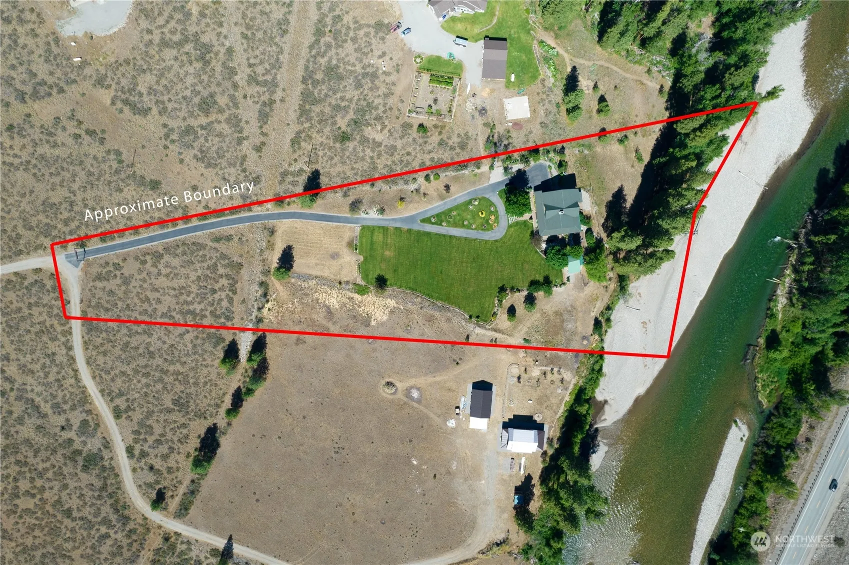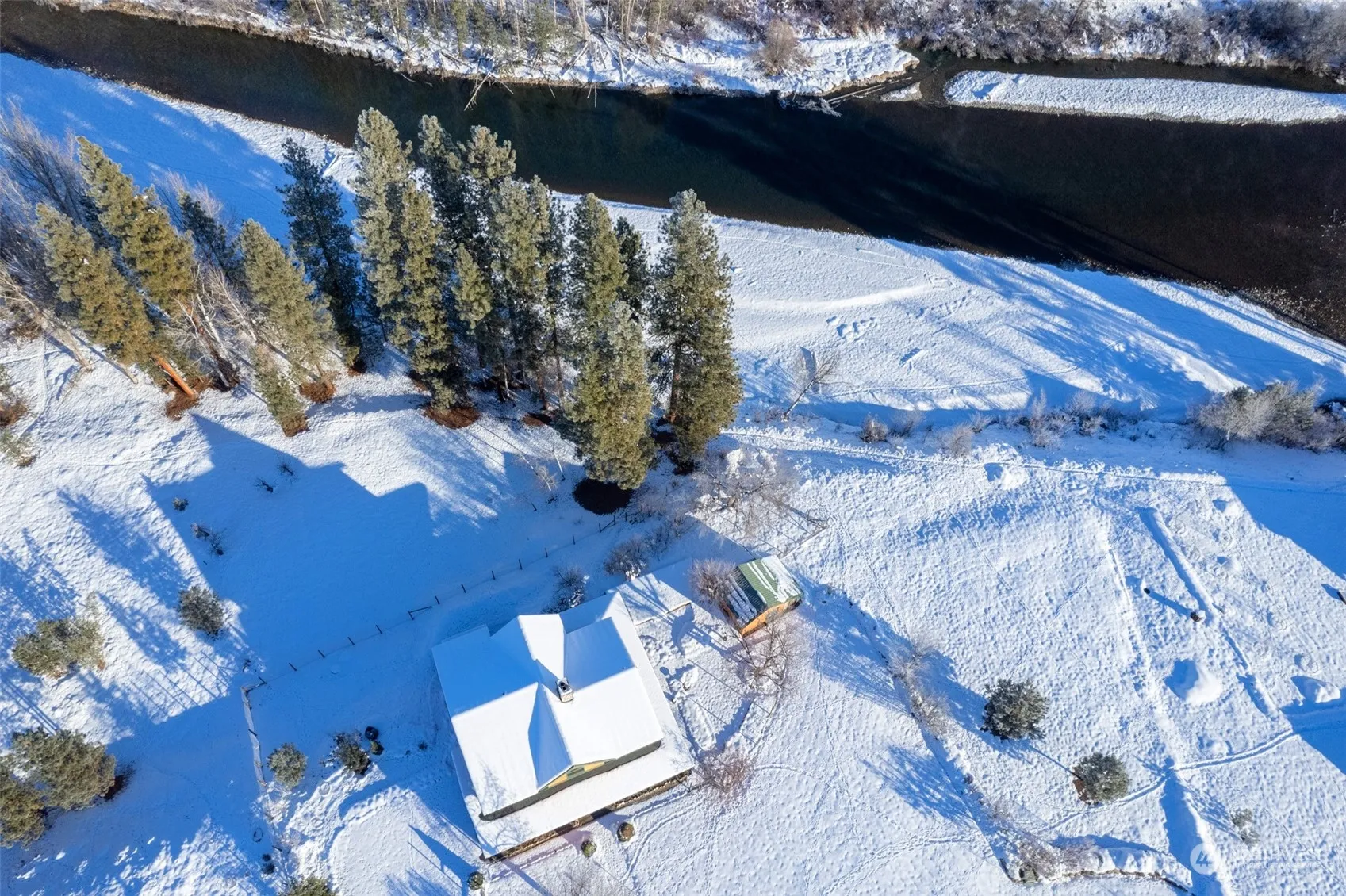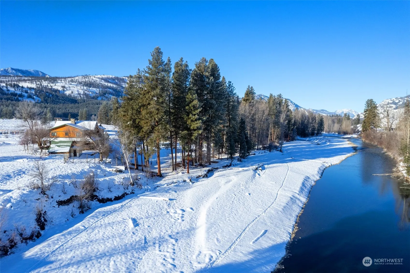 Ski Trail Retreat on the Methow River. Ski or snowshoe out the door onto Nordic trail just yards away & 24 acres of adjacent public riverfront property! Sizable home on 5+ acres near Winthrop overlooking the Methow River! Relax on wrap-around covered deck & savor the unique blend of scenic river views, towering pines, sunny meadow & marvelous gravel beach! Enjoy a spacious open floor plan featuring lg gourmet kitchen. Impressive river rock fireplace enhances the interior ambiance. Expansive primary bedroom w a luxurious ensuite bathroom & walk-in closet. Property boasts 2 more vibrant bedrms & bathrms, office & rec room. Complete w lg 2-car garage w tons of storage, appealing shady stone terrace & garden shed. Check out the video tours!
