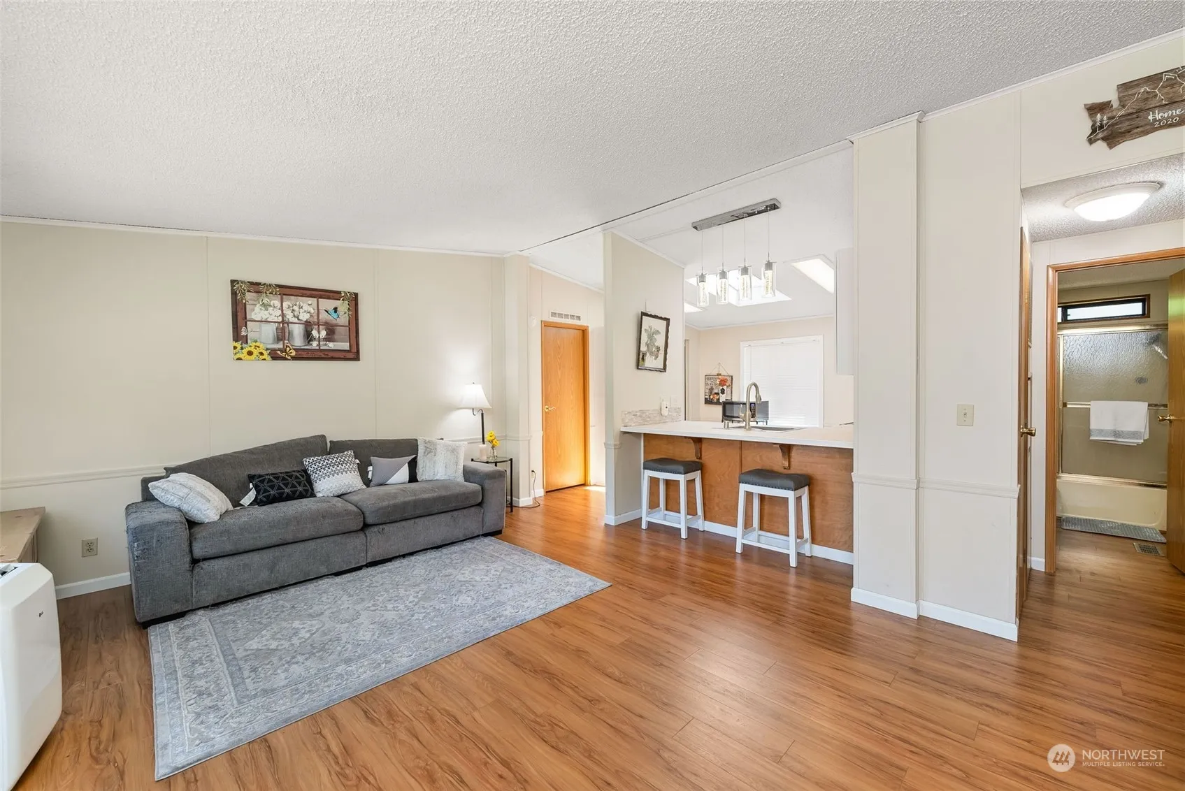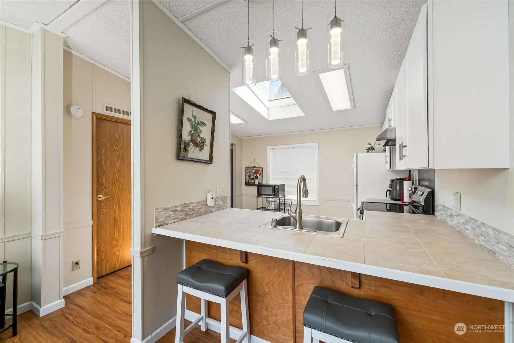 Gamblewood home on large corner lot! 1080sqft with 3 beds & 1.75 baths. Cleared .21 acre lot with garden space & private back deck. Established fruit trees & bushes. Great natural light with vaulted ceilings & large skylight in the living room. In 2020 flooring was replaced with vinyl plank & new windows were installed. Primary suite has a large ensuite bathroom with great counter space & an oversized shower. 3rd bedroom currently used as an office. Kitchen has bright white shaker cabinets & great counter space with an eat-up bar. Stainless steel range & dishwasher. Detached insulated 2-car garage. New Garage doors. The community has a private park and beach access. Short commute to the Kingston/Edmonds Ferry & all Kingston amenities!
