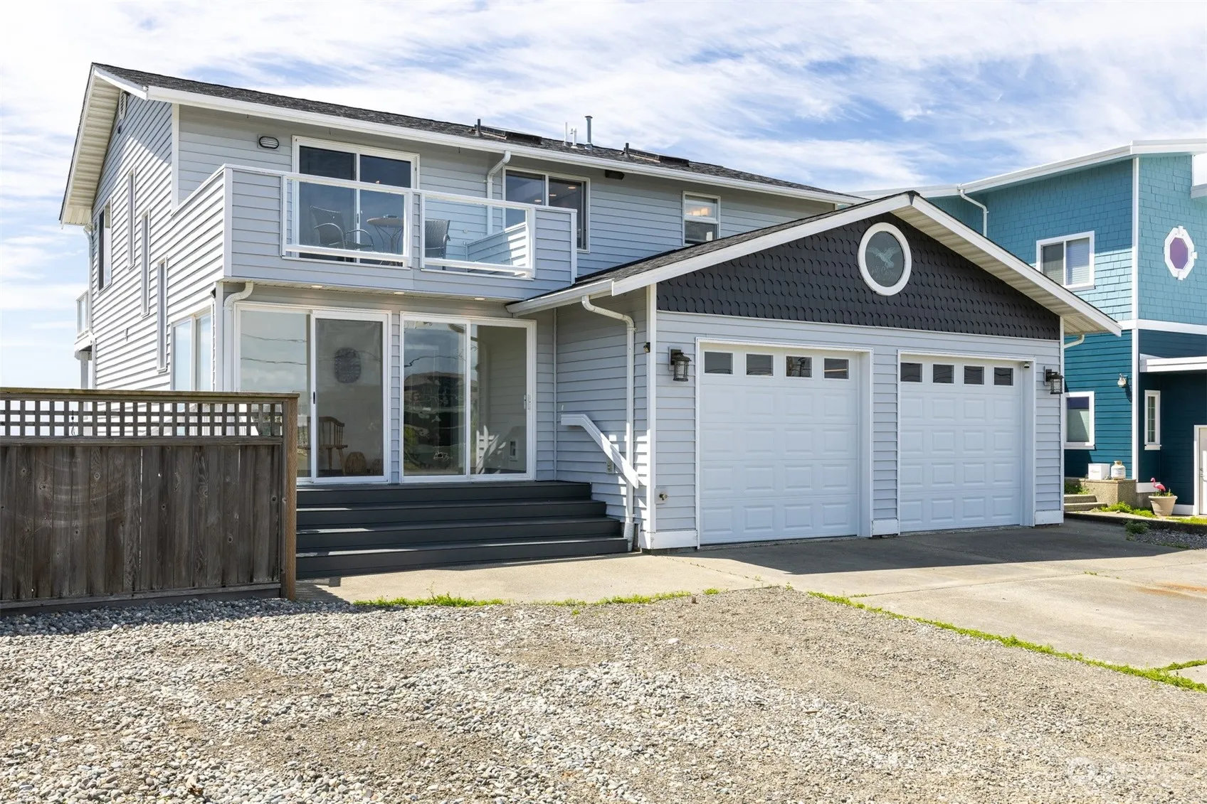 Enjoy the views of a lifetime from the comfort of this charming beach home! Watch the sun rise above Mt Baker from the east balcony and set into the San Juans from either of the two huge decks on the west side for a world-class experience. Main level offers covered entrance, 2 large bedrooms, updated full bath, and covered deck leading to beach + fire pit. Upstairs boasts open floor plan with scenic living and dining rooms flowing into a sunny kitchen with mountain vistas. Expansive primary bedroom has walk-in closet + deck access across from 3/4 bath. 600+ sqft attached 2-car garage w/ tons of storage. Make this your dream home and/or a stunning vacation rental. Either way, your opportunity to experience the best views in Whatcom is here!