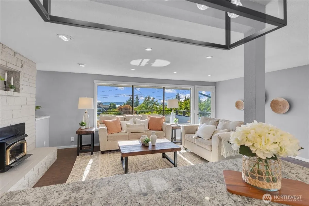 Edmonds Bowl living at its best! Enjoy stunning views of the Sound, Olympics and Whidbey from this gorgeous 3 bedroom + den home on a quiet street. Savor magical sunsets, ferries passing by and the smell of salt water from the West-facing Trex entertainment deck. Bright, open kitchen with large island and pantry. Open concept living and dining rooms. French doors open to the covered back patio. Large primary suite features a full bath & 2 closets. 2nd bed and full bath complete the main. Daylight lower level with family room, 1 bedroom, 3/4 bath, laundry & home office. MIL apartment potential? Gardener’s oasis with ample planting areas. New roof, paint & carpet. A/C & gas heat. Blocks to vibrant downtown Edmonds, restaurants and arts scene.