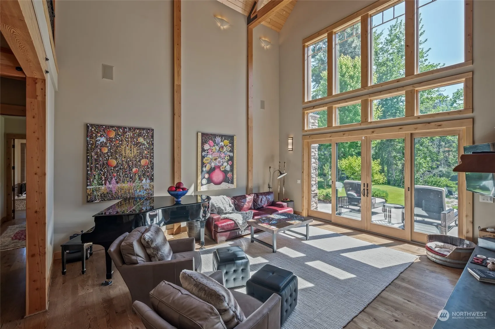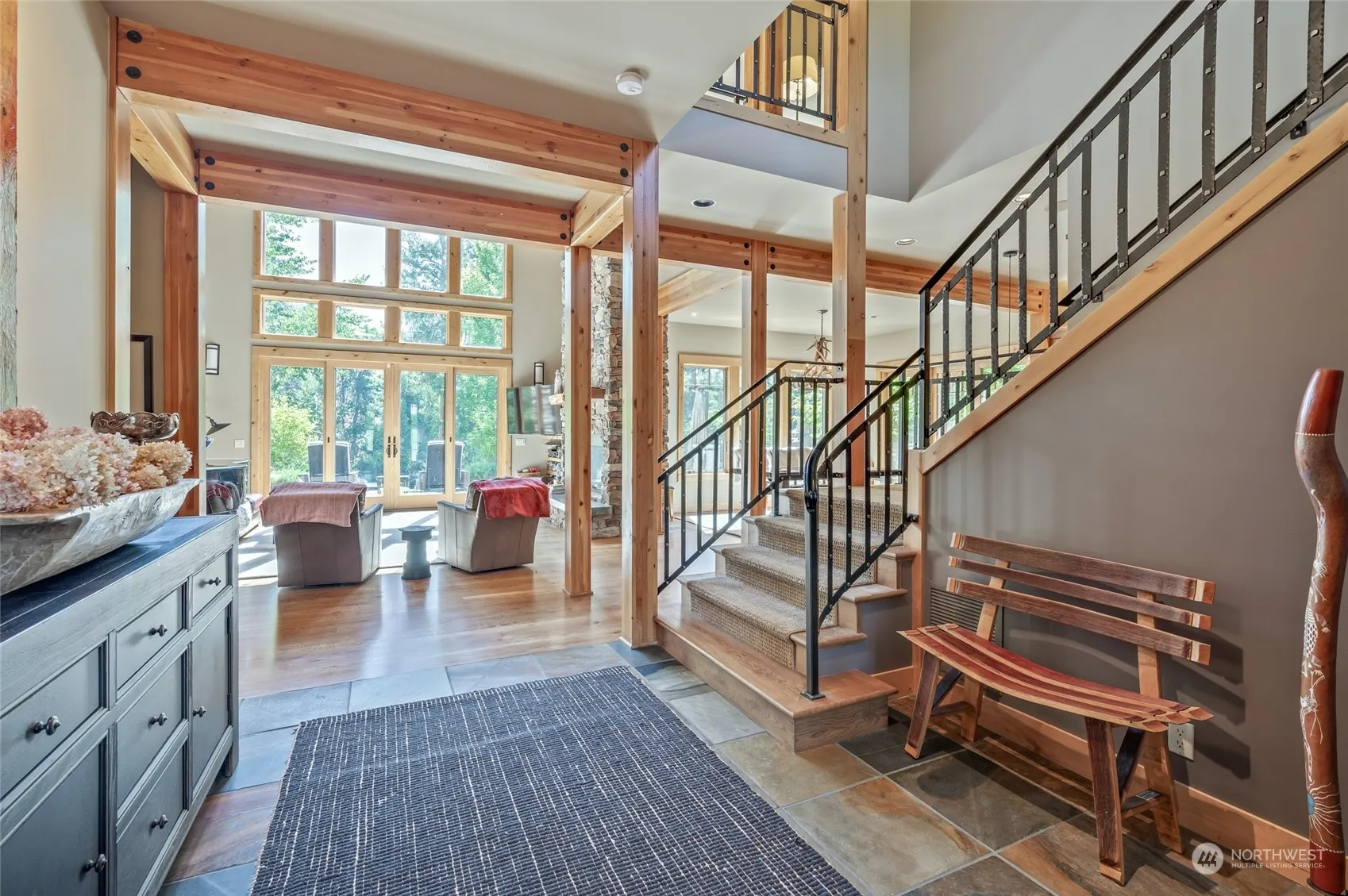 Nestled on a spacious Wenatchee riverfront property, this luxurious haven offers commanding views. Enjoy the convenience of sandy banks for easily launching your tube to float Wenatchee River. Immerse yourself in the tranquility of organic grapes, blueberries, raised beds for herbs and tomatoes amidst impeccable landscaping. Custom-built by Fred Dowdy, Timber hybrid home boasts 28′ soaring vaulted open beams, seamlessly blending rustic charm with architectural elegance. Inviting white sand firepit or gather around the distinctive stacked stone, basalt fireplace, all while enjoying panoramic views of the river. Includes two full-service RV pads. Embrace the opportunity to transform this into your own personal wonderland of luxury & leisure
