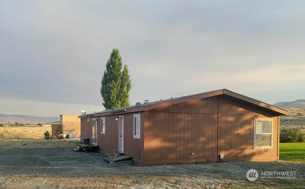 Omak – Mountain Views – Riverside Cutoff Rd – 22.09 acres MH 3 bed/2 full bath with updated flooring, interior/exterior paint, doorknobs, & light fixtures. Dining room with ceiling fan, living room, kitchen with walk in pantry – all appliances stay, laundry room with utility sink, two bedrooms with full bathroom, primary bedroom with en-suite/soaking tub. Add. lots with a private 13.5+ GPM drilled well and power. Lot 1: 8.55acres Lot 2: 11.66 acres. 80 x 50 shop with power, cement pad, and wood stove. Overhangs for ample storage on both sides of shop. Outbuilding/shed. Potential for gravity septic tank – at cost of potential buyer on lot with shop. Privately maintained road. Duck Lake Water Association. Septic. $370,000 MLS-2261732/H-3571