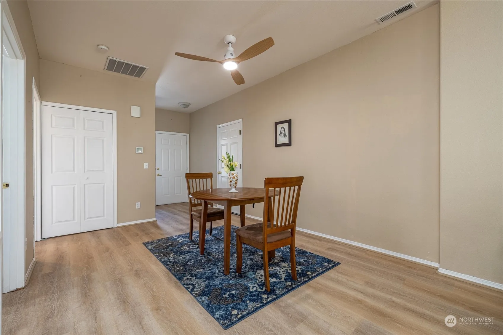 Discover comfort and convenience in this charming single-level 1-bed, 1-bath + office condo in Mount Vernon. Includes an attached 1-car garage, patio, and walk-in closet. Condo features new LVP floors throughout, ceiling fans, all new kitchen appliances + new washer/dryer, new gas furnace and garage opener. Perfect for modern living with updated amenities and a versatile office space large enough to be used as a spare bedroom. Located centrally for easy access to shops and parks. Ideal for down sizers seeking a low-maintenance lifestyle in a vibrant community 55 and older community with well maintained grounds and common space including community club house to host any events and socialize.