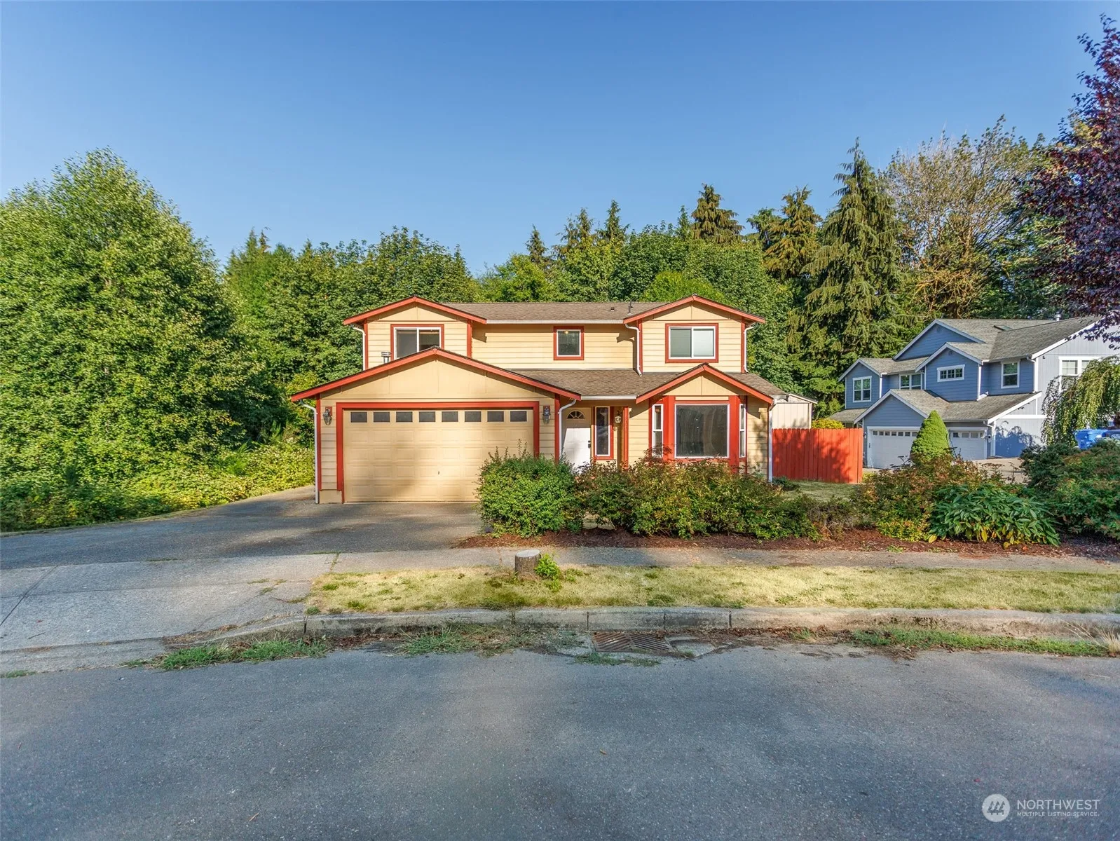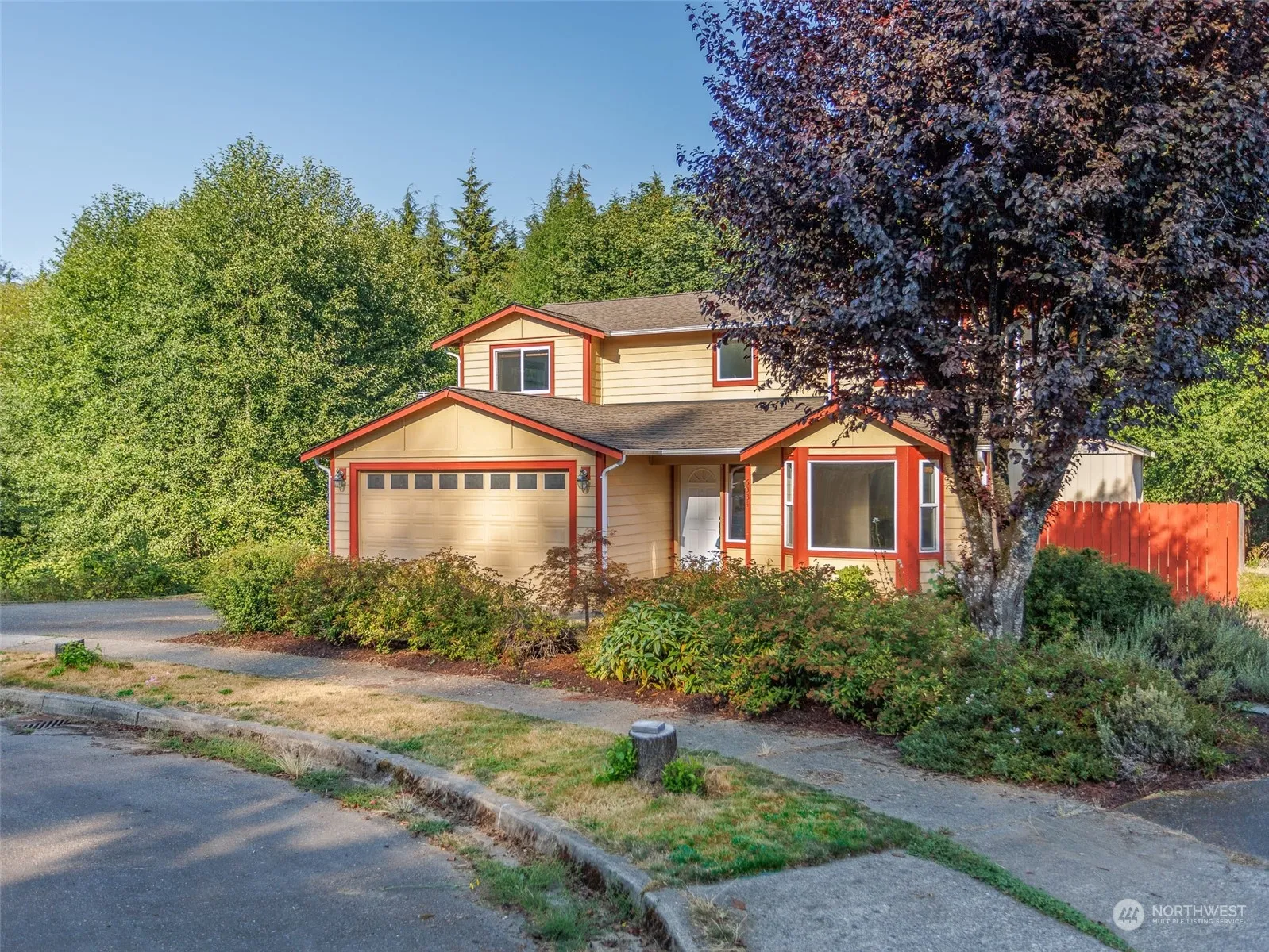 Beautiful Tumwater home in a secluded cul-de-sac within well-maintained neighborhood. This bright, natural-light-filled home features a large bay window, open living and dining areas, utility rm, and 1/2 bath on main floor. Kitchen has granite countertops, newer appliances, and an in-home vacuum system. All 4 bedrooms are upstairs, including large primary w/ ensuite. The backyard offers a spacious deck with gazebo, serene greenbelt views beyond fence line, plus shed and hot/cold water faucet on side of home. Conveniently located near shopping, schools, and I-5. BRAND NEW HVAC/CENTRAL AIR/HEAT PUMP W/ UV LIGHT! (2024) NEW ROOF (July 2022).