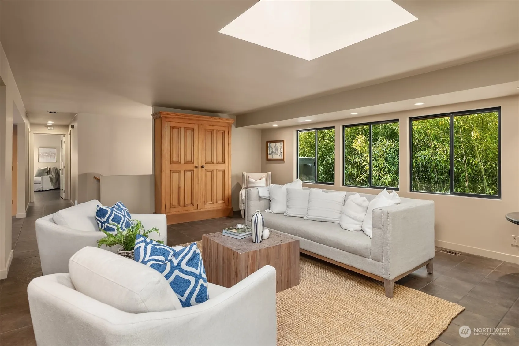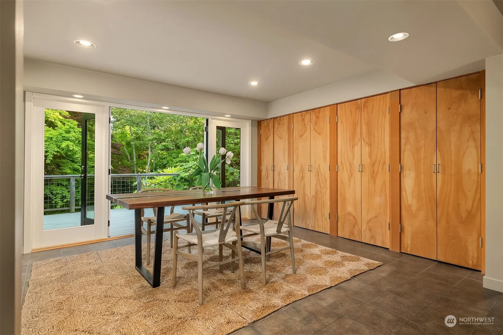 Cool mid-century contemporary home just blocks from the ferry and downtown Winslow. The 3-bedroom house (two with ensuite bathrooms) features ample custom cabinetry and built-ins throughout for excellent storage. A spacious deck spans the south side of the home, with access from the dining room and primary bedroom. In the spacious primary bedroom suite find a walk-in customized closet and bathroom with separate shower and deep soaking tub. The grounds are an oasis, with pathways through lovingly established gardens of beautiful specimen plants. Located just up the street from the ferry terminal and Winslow Way to enjoy the amenities of town, the property itself offers a serene retreat-like space.