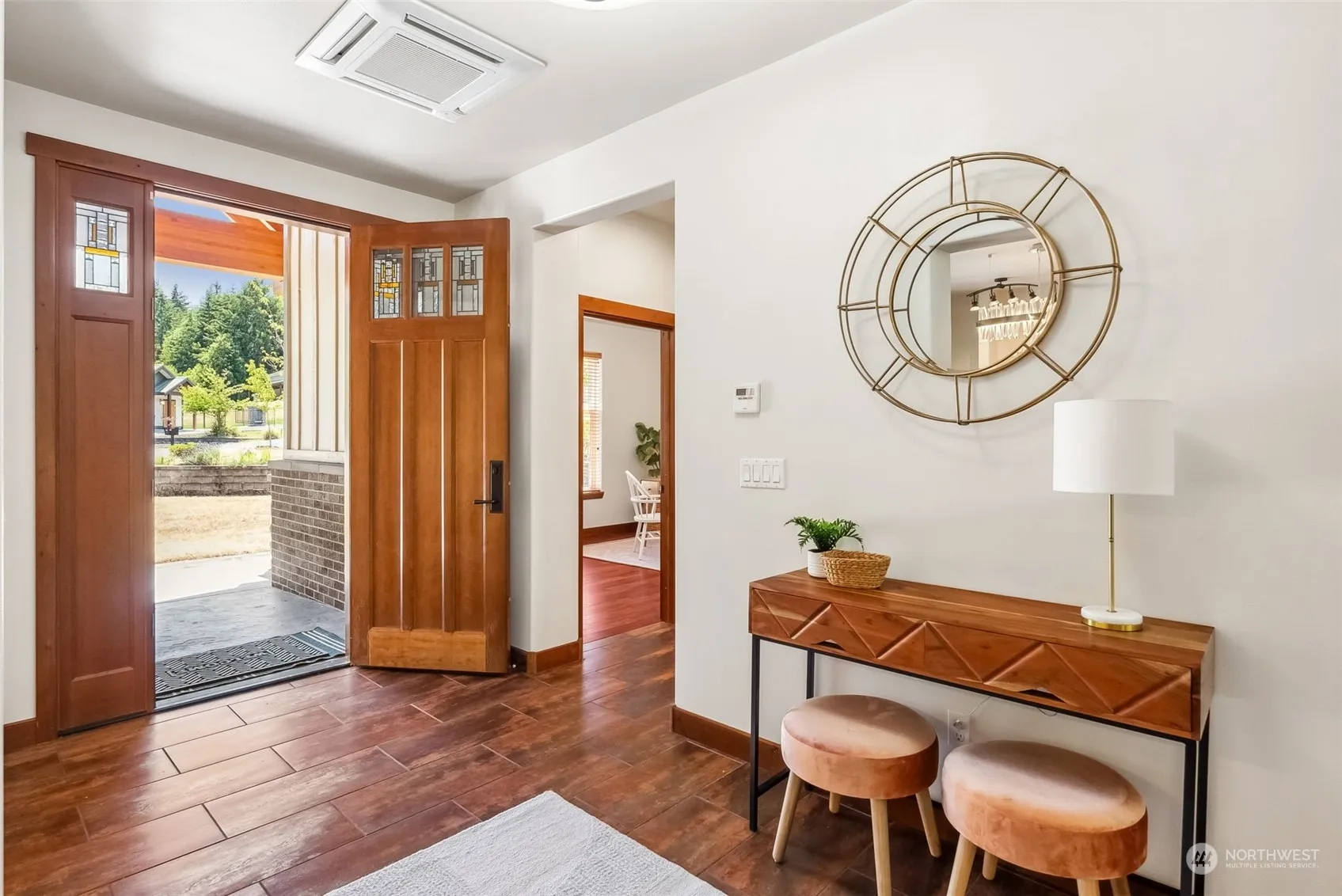 Experience elegance and upscale living in this custom-built, 2-story craftsman home. This spacious residence spans 3,868 sq. ft. with 3 bedrooms and 3.5 bathrooms, featuring main-level living and a large bonus space with a full bath upstairs. Nestled on 3.23 acres, enjoy over 20 flowering trees and an extended sprinkler system. High-end finishes include imported Andean walnut doors from South America, double Wolf ovens, range, microwave, Sub Zero fridge, and a Miele dishwasher. Updated touches feature choice carpentry, Aquasana water filtration, a tankless hot water system with a recirculation pump, a high-efficiency heat recovery ventilation system, zonal HVAC mini-splits, heated towel racks, a lighted crawlspace, and a fenced backyard.