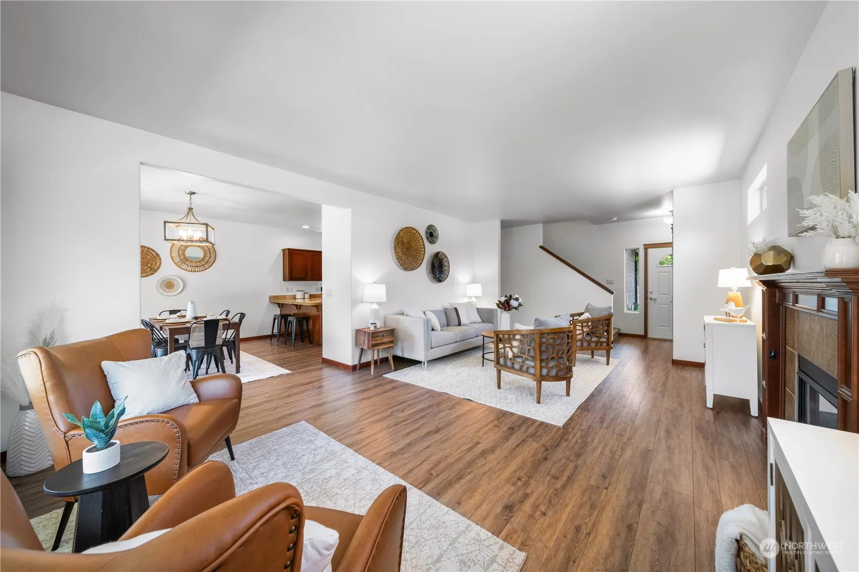 Corner lot in the desirable Claridge Court neighborhood. Enter from the covered front porch and find fresh paint + luxury vinyl plank floors. The kitchen boasts granite countertops and stainless steel appliances. The large main living area with a gas fireplace is open to the dining area and overlooks the expansive [COVERED] back patio. Upstairs at the end of the hall is the primary suite with vaulted ceilings, a walk-in closet, and en suite bathroom with double sinks + a tiled walk-in shower. Three additional bedrooms, a full bathroom, and laundry are all upstairs. The large 4th bedroom makes the perfect bonus room. Don’t miss the nicely finished garage with epoxy floor. Paved + gated [RV PARKING], fenced dog run, and no HOA. Welcome home!