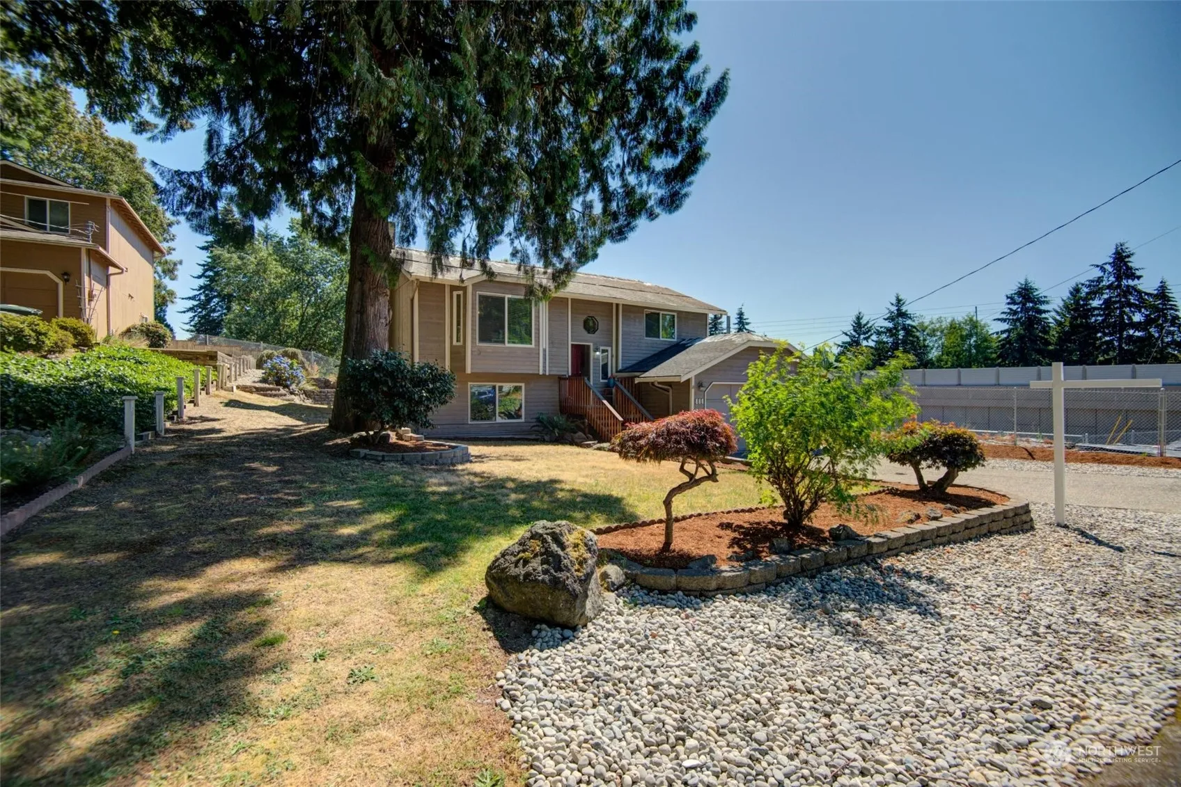 Must Sell! Price Reduced $25,000 to $750,000. Beautifully updated 3-bed, 3-bath split w/1,860 sqft of living space. Top level has a bright and airy living room, vaulted ceilings, skylights, hardwood floors and electric fireplace. The kitchen is a chef’s dream, with new appliances, stylish cabinets, quartz countertops. Enjoy your meals in the dining room with access to a private deck, perfect for alfresco dining. The primary bedroom boasts an ensuite and a large bonus area/home office. A guest bedroom and updated full bath complete the upper level. Lower level features a large family room, space for exercise equipment, laundry room, a third bedroom, bonus room and 3/4 bath. Short walk to Paramount Park and Shoreline South light rail station.
