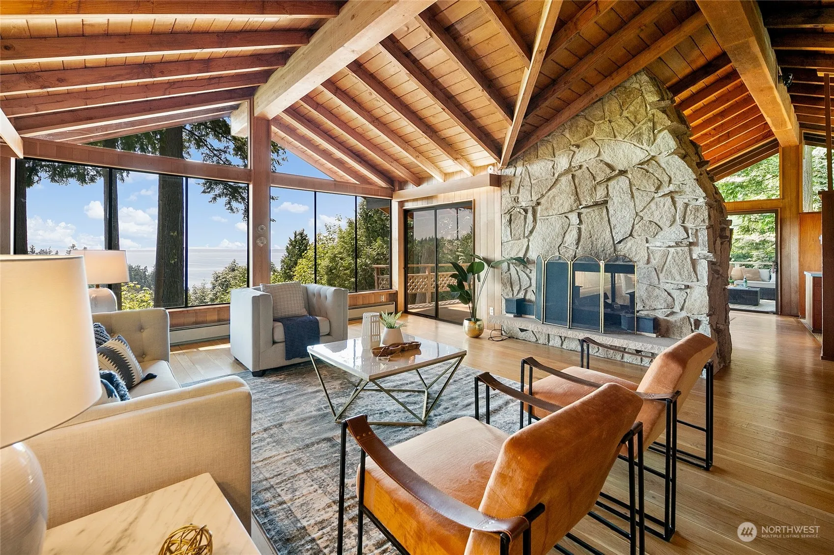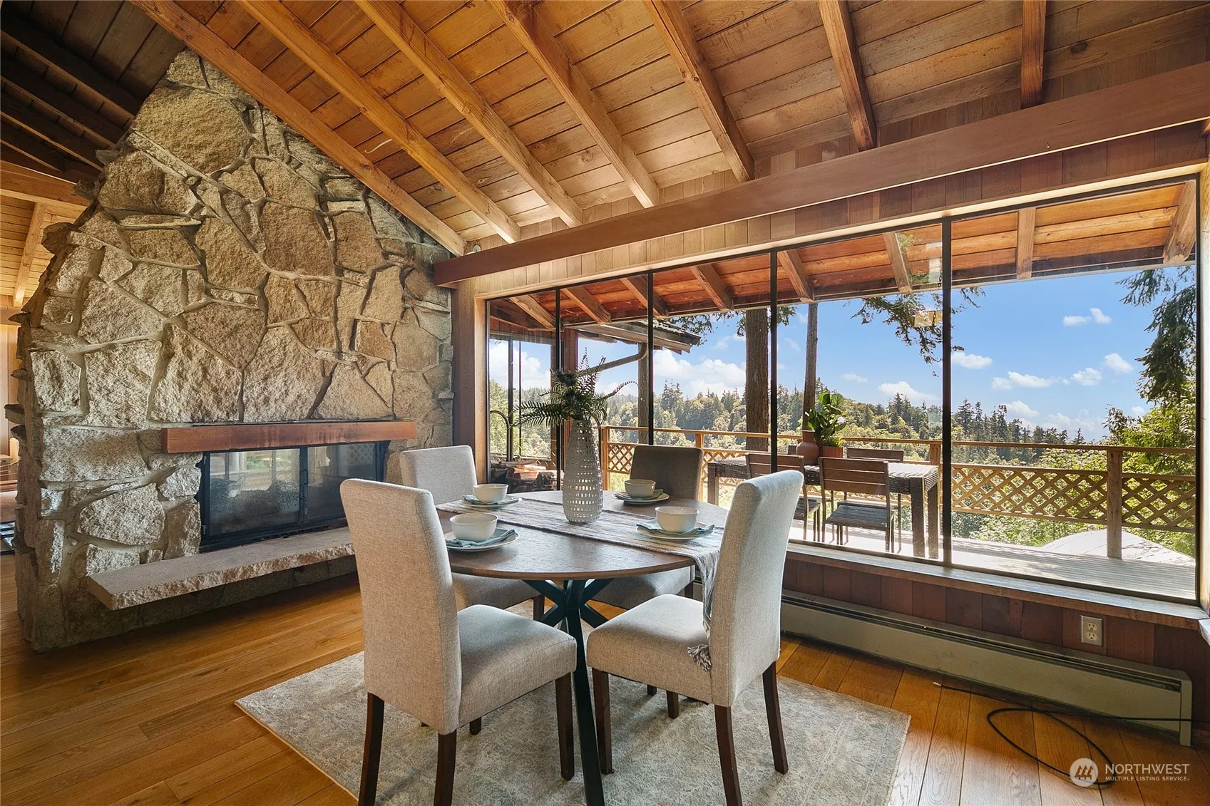 Huge price drop! Set on a private 30,928 sf property w/ panoramic views of Puget Sound, this custom NW home is sheer poetry. Inside find soaring ceilings, exposed beams, walls of glass, sun-drenched living spaces, dream views. Gather around the 2-sided stone fireplace. Enjoy amazing sunsets while hosting dinner parties inside or out. You’ll appreciate the wood floors, spacious master, remodeled baths, old world craftsmanship, attached garage, rustic style reminiscent of a mountain lodge. The private yard includes view deck and patios for entertaining, towering trees, tons of parking, attached garage, green house. Escape the hustle bustle + come home to a peaceful PNW retreat. Who knows, maybe you’ll write the great American novel after all.