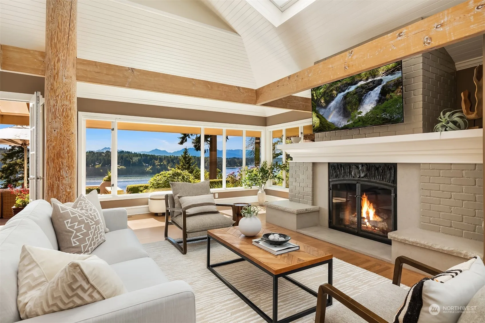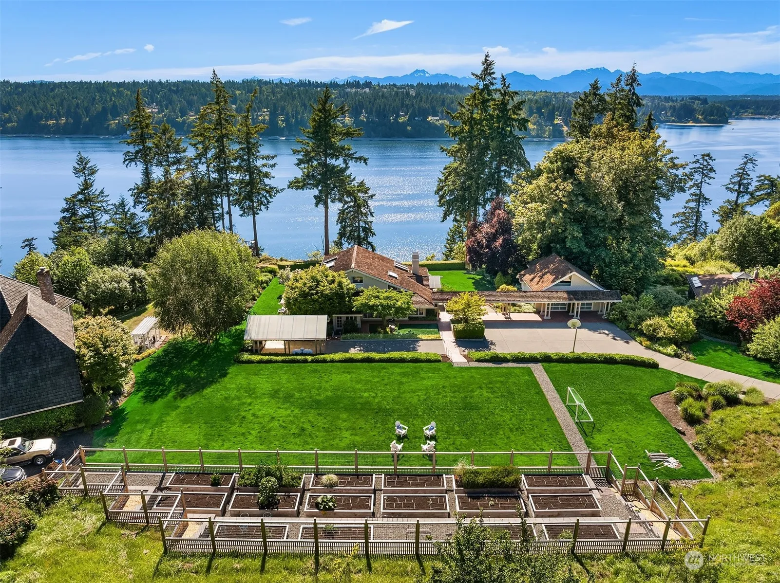 Discover estate quality west facing waterfront bliss w/ panoramic mountain views in this Tom Johnston-designed estate. Just as masterfully created as you’d expect, w/ a modern, rustic aesthetic accentuated by iconic vistas of the Olympics, natural light & open beam ceilings. Chef’s kitchen has a Lacanche range & expansive island perfect for any occasion. The private waterside deck gives way to endless lawn games on irrigated grounds or tending to your favorite fruits & veggies in the organic raised garden bed plaza. Retreat to the main floor bedrooms or indulge in the upper suite w/ fireplace, ensuite bath, walk-in closet, & bird’s eye view of the water. Quiet, private neighborhood. 2 tax parcels offer potential for a custom dream compound.