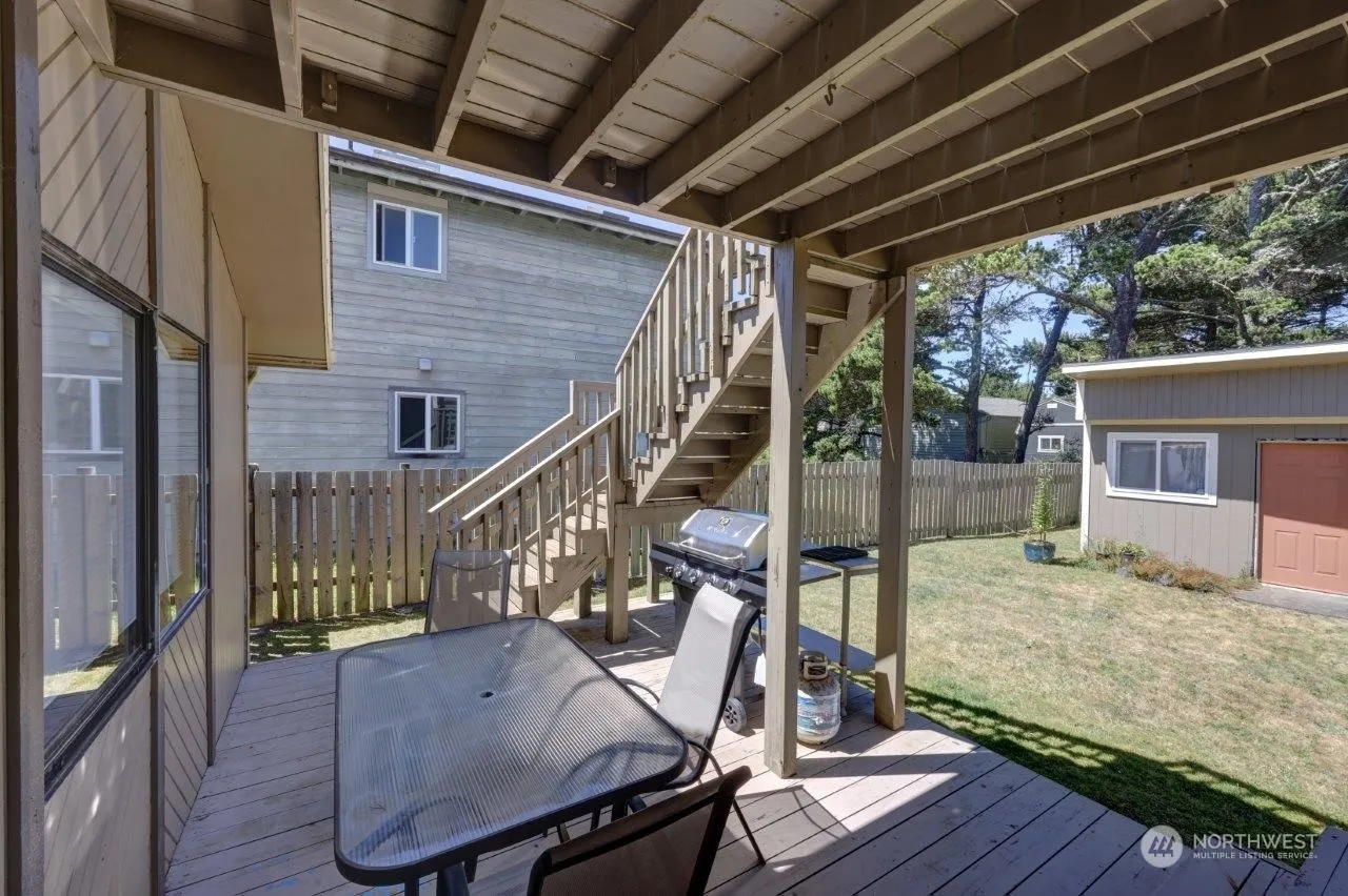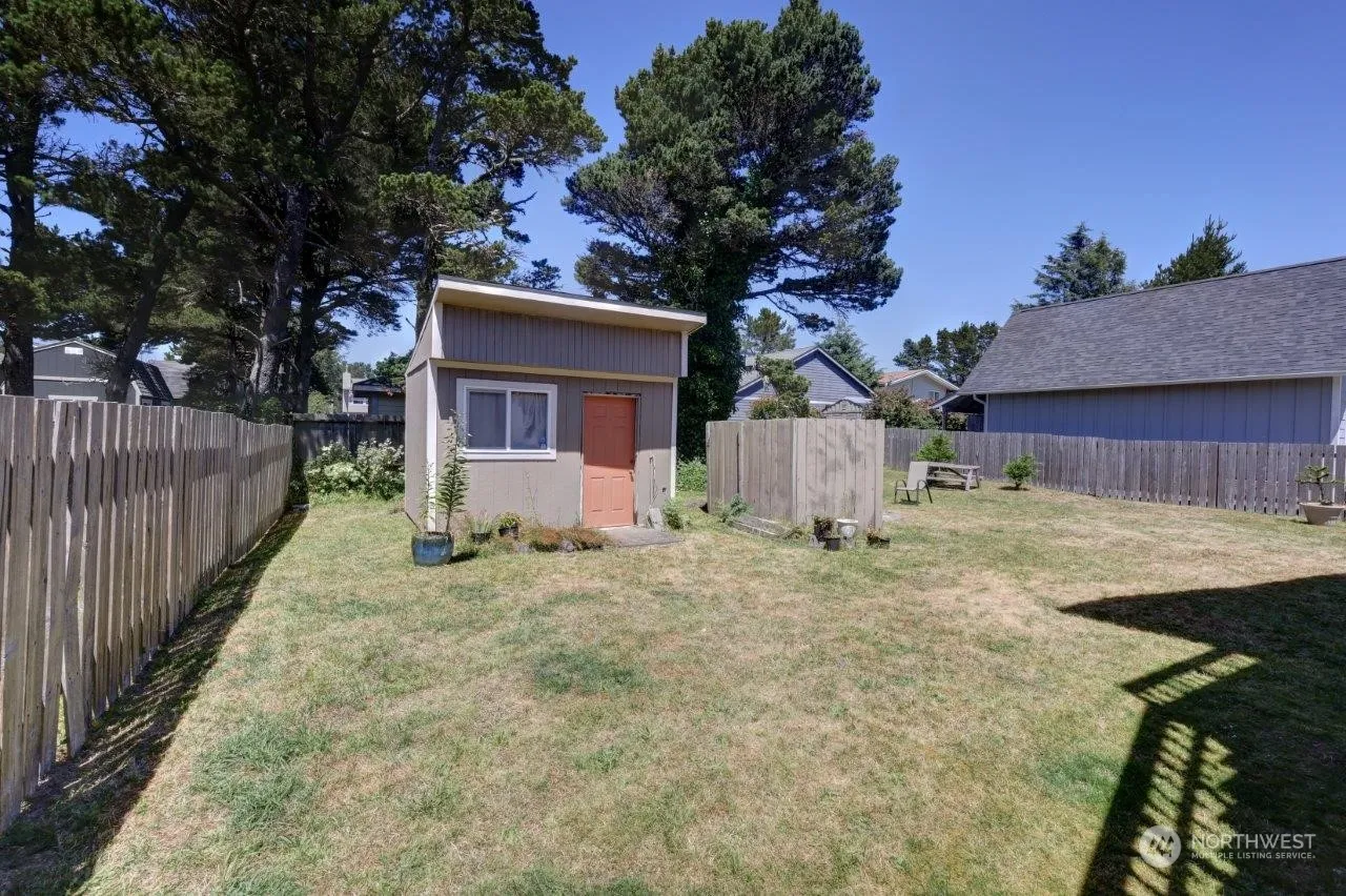 Welcome to this darling 2 bed 2 bath house in Tides West, where the sky seems a little bluer, & walks to the ocean on the deeded beach access are special each time. All of the necessities of your full time residence or beach home are right here. A Single car garage, driveway, & street parking start things out nicely. Step inside to find cedar trim, vaulted ceilings, big windows/skylight, spacious greatroom & a kitchen sporting granite & nice cabinets. You have a primary suite, & the second BR has access to a full bath as well from the room itself. Laundry room is a nice size w plenty of storage, also a small loft access there. Open backyard is fenced w/covered deck, & space to enjoy outside time or garden. Great location, must see!