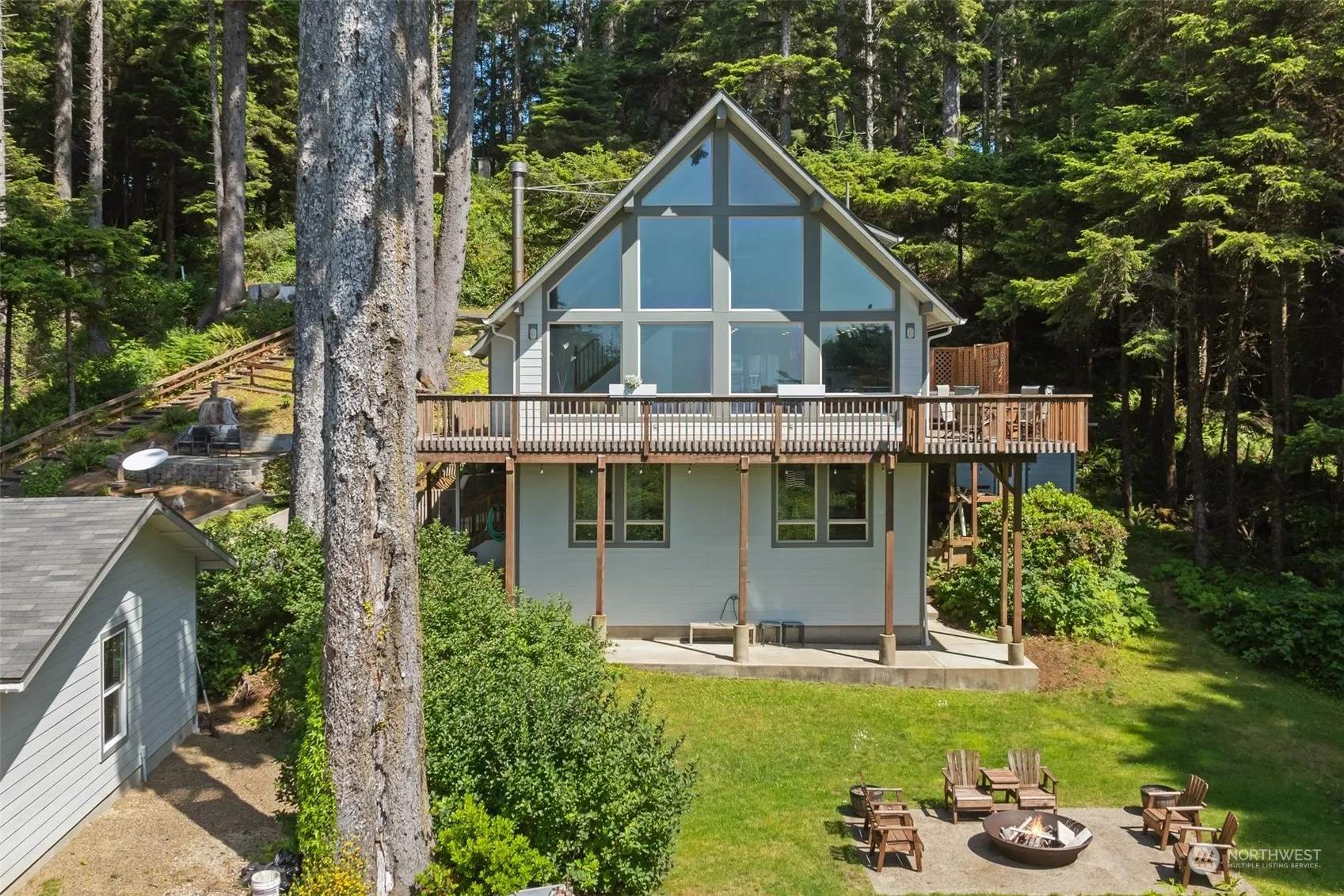Incredible privacy at the beach! This ocean-view 4 bed, 3+ bath home has everything you need in a PNW beach getaway. Enter the main floor to find a vaulted, custom ceilings in the living room and brand new kitchen w/ top end appliances. 3 bedrooms, including one of the primary bedrooms, on main floor. Upstairs you’ll find primary-bed loft outfitted with additional living space, large primary w/ renovated 3/4 bath. Downstairs is huge rec room that leads to wet bar, infrared sauna and laundry/storage area. Outside you’ll find a new detached 2-car garage with ample storage alongside custom patio + fire pit, wraparound deck with hot tub and storage building. Private community trails provide access to miles of walkable beach!