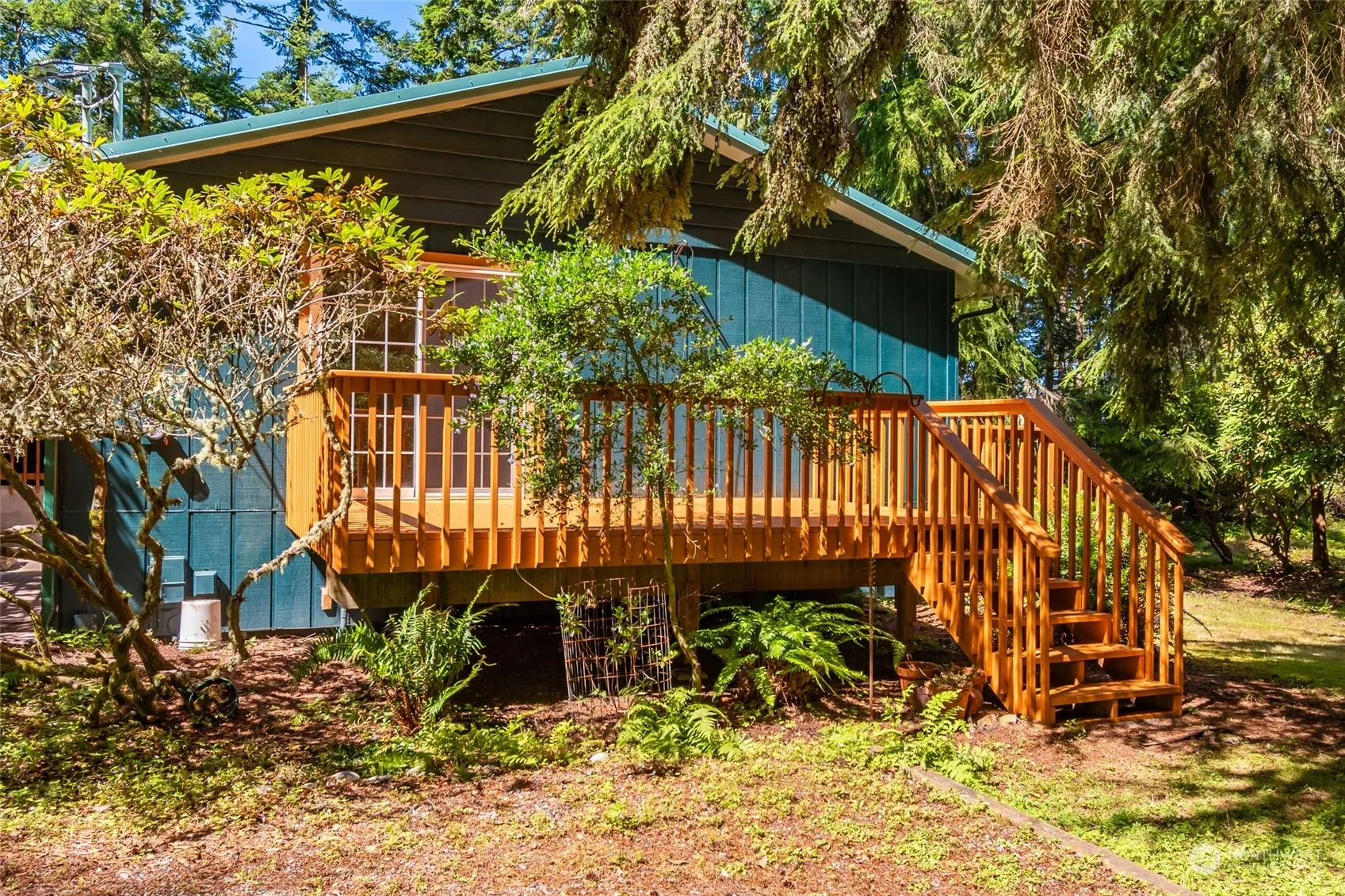 Imagine life in a lovely secluded treehouse with branches moving gently in the breeze! This late 60s home is solidly built, with updates like new windows, sliders, metal roof, & spacious decks. Hardwood floors on most of upper level, ceramic tile on lower level. Multipurpose room, library space, art studio, office, 3/4 bath. 3 fireplaces, kitchen & dining great room, separate living room with wraparound windows. Primary bedroom with walk in closet & bath. Large detached shop/garage with workshop area & upper storage, possible guest quarters. Just minutes from the Price Sculpture forest, Long Point, Coupeville boat launch & County buildings, Hospital, grocery & quaint historic Front Street with its shops & restaurants. Come see soon!